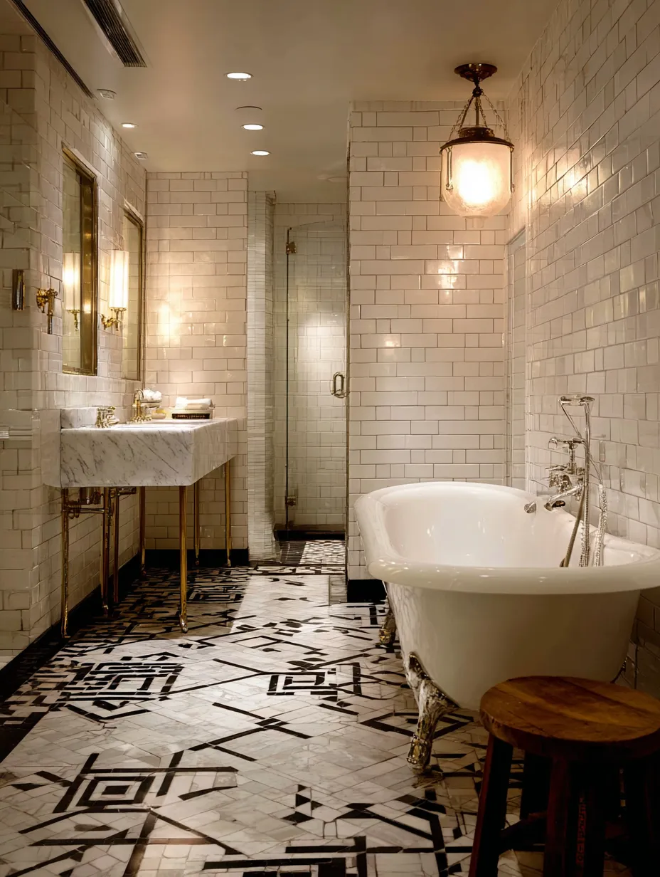 🚽 Classic Fixtures: Think pedestal sinks, clawfoot tubs, and vintage-style faucets in chrome or brass.