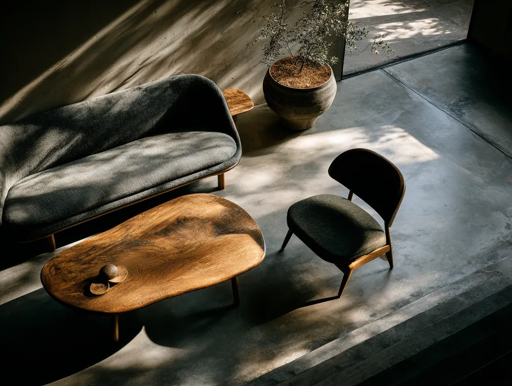 1️⃣ Clean Lines & Organic Shapes: Focus on furniture and decor with simple, streamlined silhouettes and natural curves.