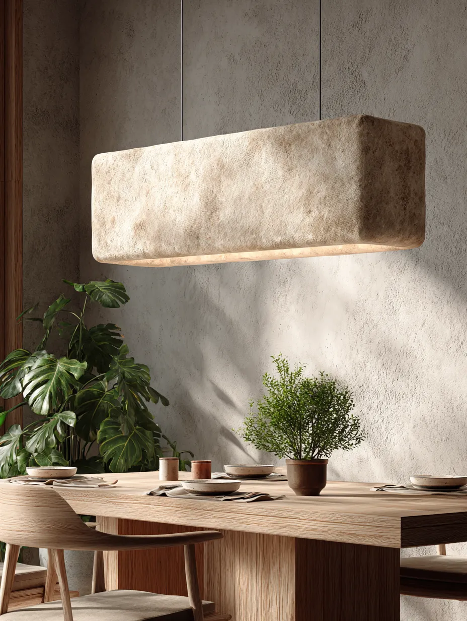 * **Soft Lighting:** Pendant lights with natural materials or warm-toned ambient lamps.