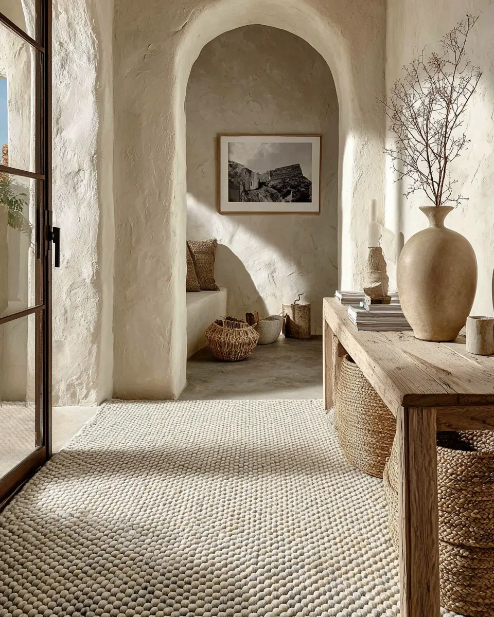 * **Layer Textures:** Incorporate woven baskets, a natural fiber rug, and a simple wooden bench. 🪵