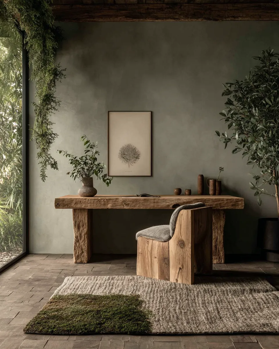 Cultivate a focused yet serene workspace. Save for your home office transformation! 🤎 #HomeOfficeIdeas#CalmSpaceIdeas#GroundingDecorIdeas#NaturalHomeOfficeIdeas#MinimalistOfficeIdeas#HomeOffice#InteriorDesign#HomeDecor#ProductivitySpace#EarthyElegance