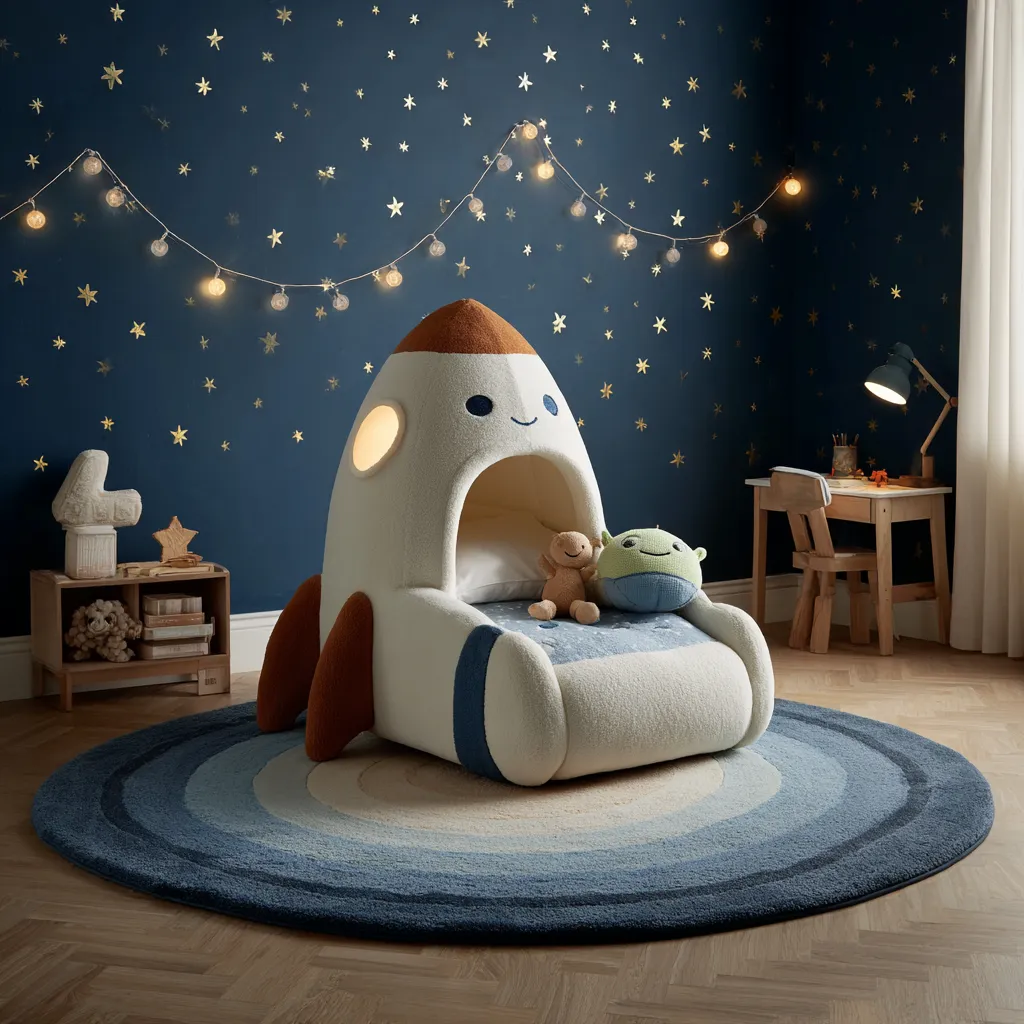 Create a magical galaxy for your little astronauts! 🚀 [Celestial Designs] loves bringing the cosmos to life for children. Think walls painted in deep blues or purples, adorned with glow-in-the-dark stars and planets. A bed shaped like a rocket or moon can be a showstopper. Soft, whimsical lighting, like fairy lights or a nebula projector, enhances the enchantment. Plenty of soft cushions and plush toys create a cozy haven.