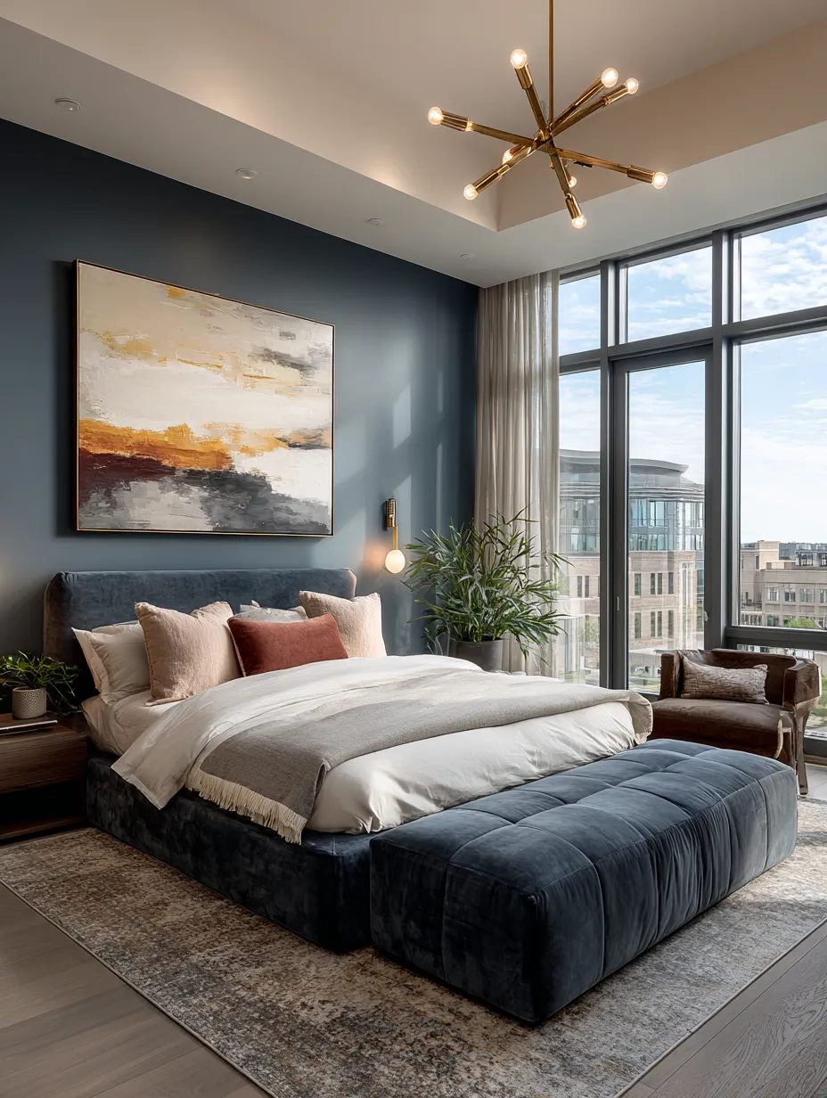 This bold choice transforms your bedroom into a personal sanctuary, perfect for unwinding and dreaming big.