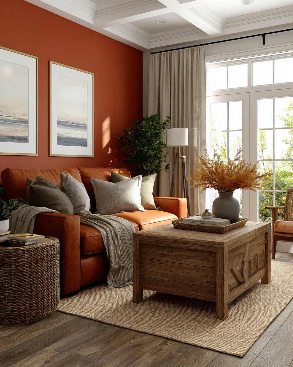 Save these color ideas for your living room! ✨ #LivingRoomIdeas#EarthyTones#CozyHomeIdeas#ColorPaletteInspo#WarmInteriors#HomeDecorIdeas#InteriorDesignTips#TerracottaDecor#LivingRoomDesign#ColorInspiration