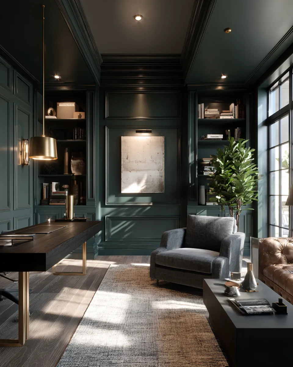 Save this sophisticated office color inspo! 💼 #HomeOfficeIdeas#EmeraldGreen#ColorPalette#SophisticatedInteriors#HomeOfficeDecor#OfficeDesign#InteriorColor#WorkFromHome#LuxuryDecor#OfficeIdeas