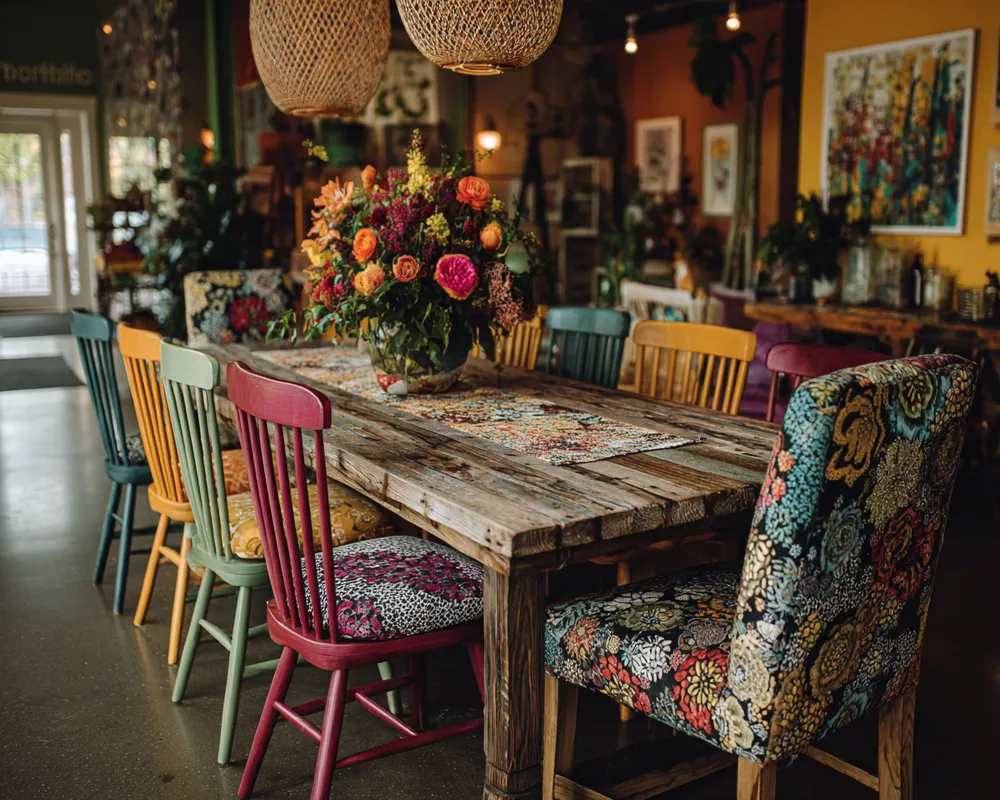 Turn your dining area into a vibrant expression of your free spirit! Mix and match vintage chairs around a rustic wooden table. Layer colorful, patterned textiles on your chairs or a runner. Accessorize with eclectic ceramics, mixed glassware, and fresh botanicals. A bold, statement pendant light can tie it all together. Don't forget comfortable cushions for longer meals! It’s about creating a space that’s as joyful and inviting as the company you keep. Let's get this party started! 🥳