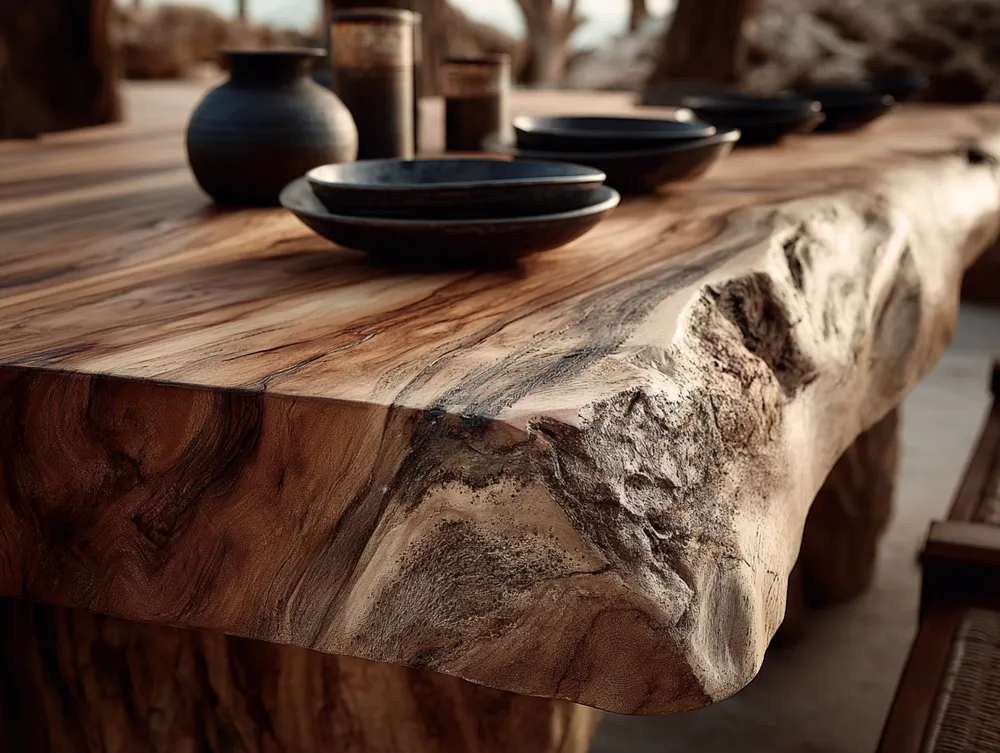 ✨ **Live-Edge Dining Table:** Showcases the raw, organic beauty of wood for an unparalleled connection to nature.