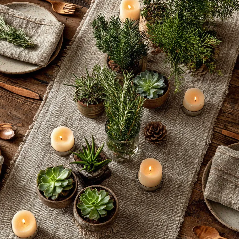 ✨ **Table Runner of Natural Materials:** A linen or jute runner complements the wood beautifully.