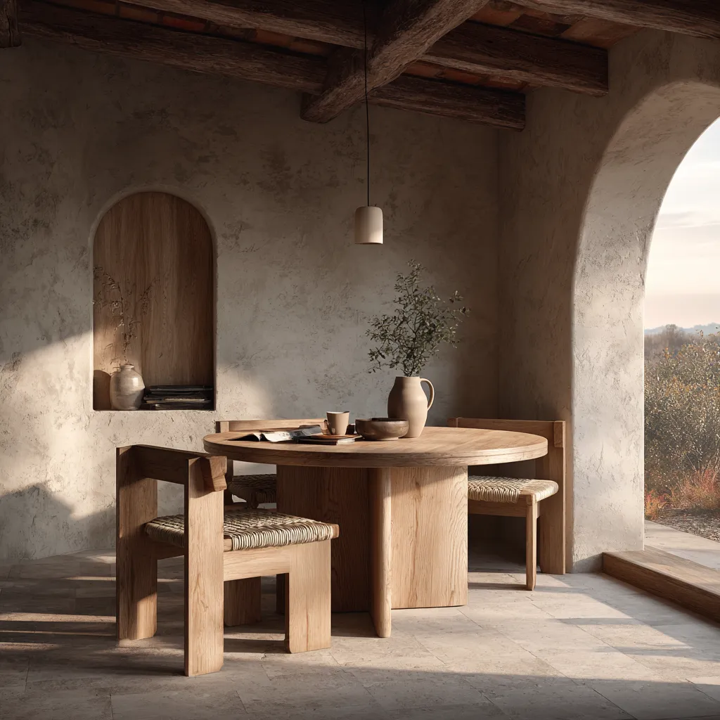 Think a small, uncluttered dining set, perhaps a round table made of light wood. Pair it with simple, comfortable chairs, possibly with woven seats for added texture. Keep the area free of visual noise – no excess décor, just essential, beautiful pieces.