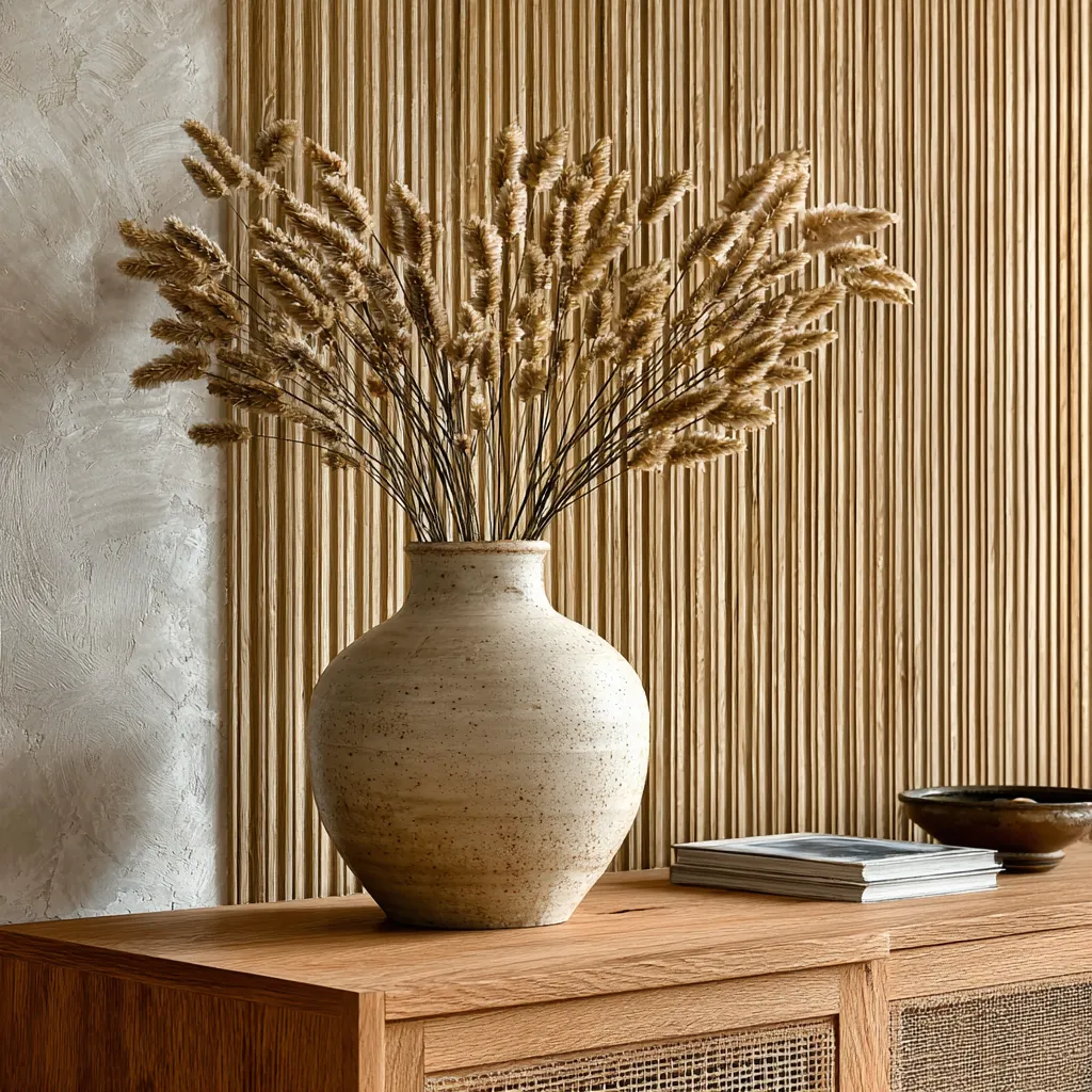 The aim is to create a focal point that feels natural and calming. Avoid busy patterns; focus on the tactile quality of the material. This approach brings a grounded, serene feeling to any room. Save this for your next accent wall project! #JapandiAccentWallIdeas#TexturedWalls#NaturalWoodPanels#LimewashPaint#InteriorDesignIdeas#MinimalistAccent#WallTexture#JapandiStyle#HomeDecorTips#SereneInteriors