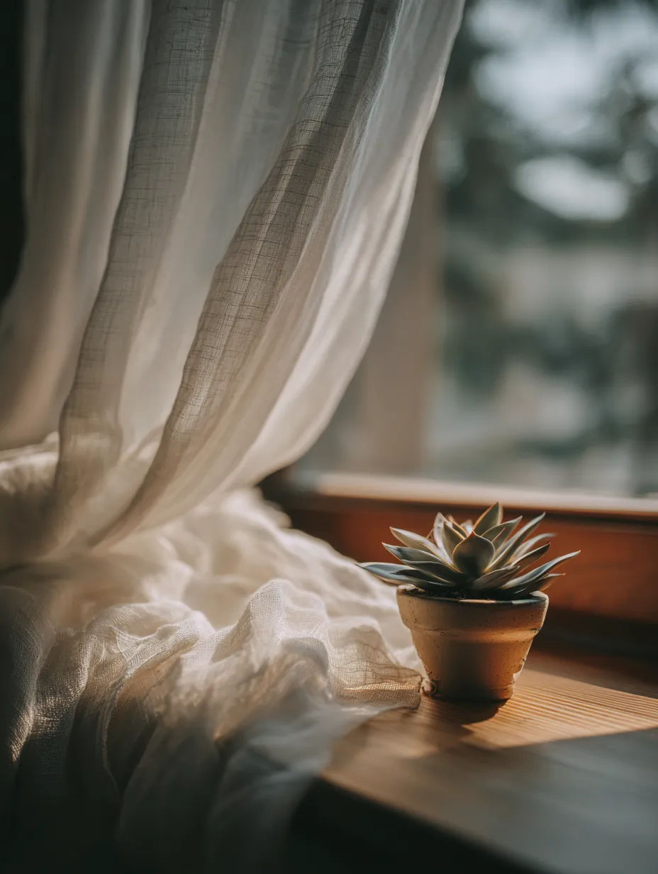 Letting the light in is crucial for that coastal feel! โ๏ธ For your windows, opt for treatments that keep the space feeling light and breezy. Think sheer linen curtains in white or soft neutrals โ they diffuse sunlight beautifully. Blinds made of natural materials like bamboo or woven wood are also perfect, offering privacy while maintaining an airy feel.