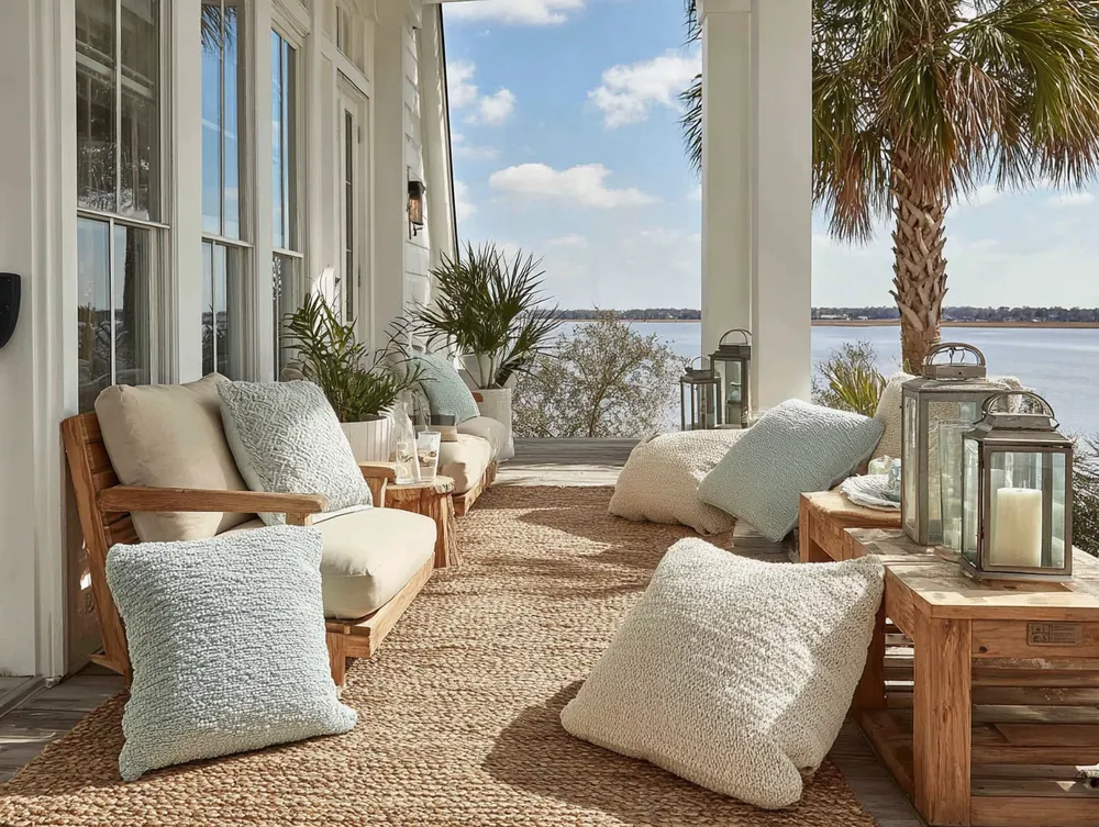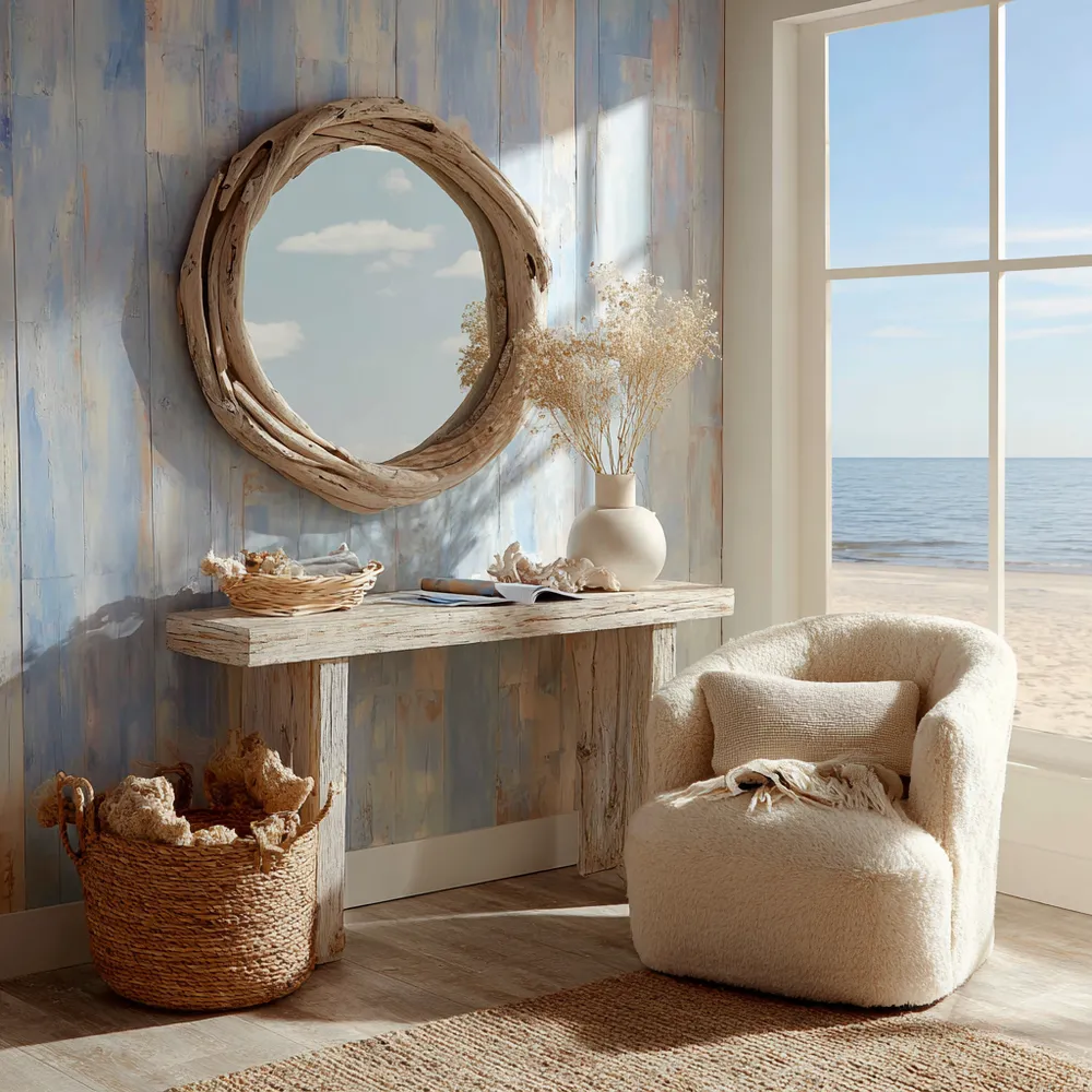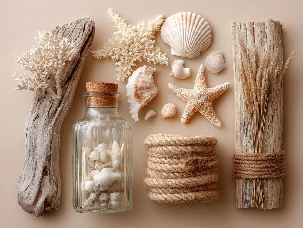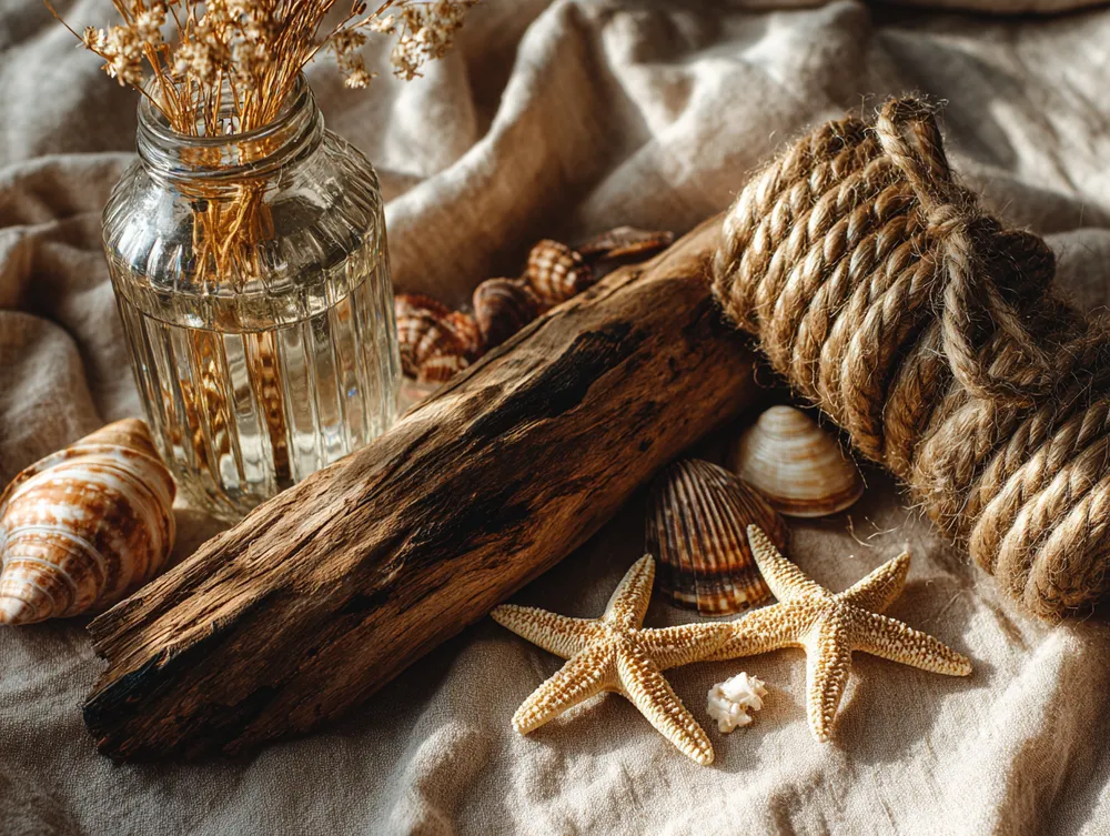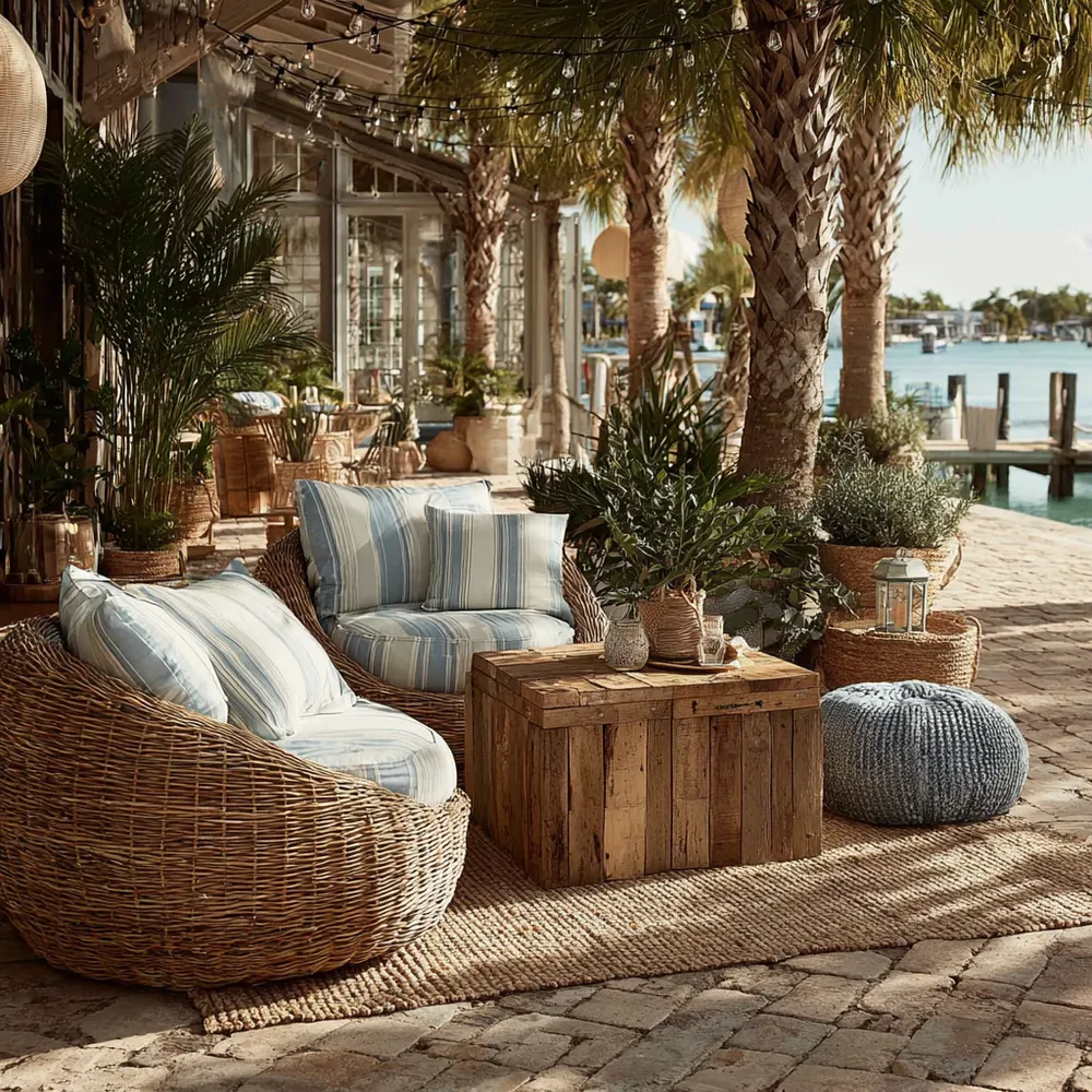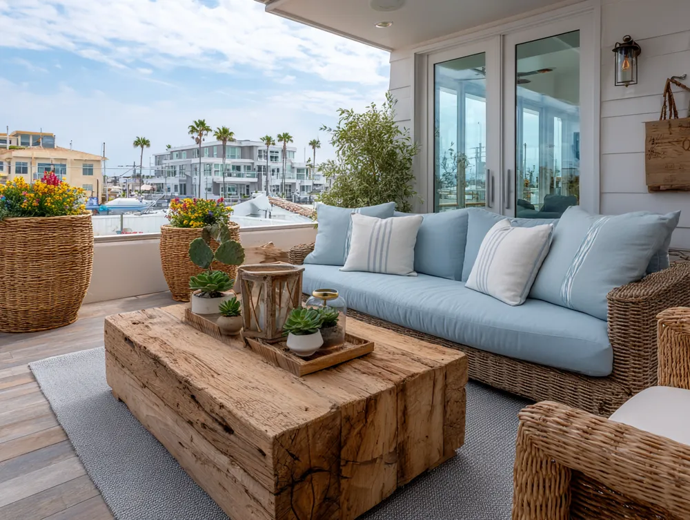 Large potted palms, seagrass plants, or even simple eucalyptus branches in a vase can evoke the beach. Choose planters that complement your coastal decor – natural materials like terracotta, woven baskets, or simple white ceramic pots.