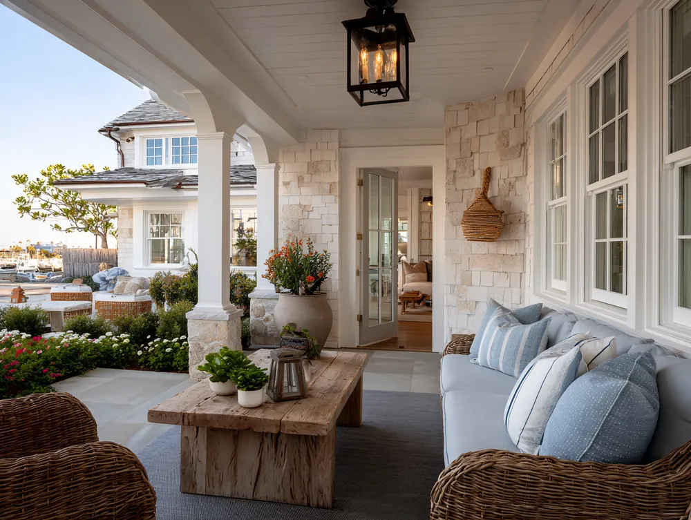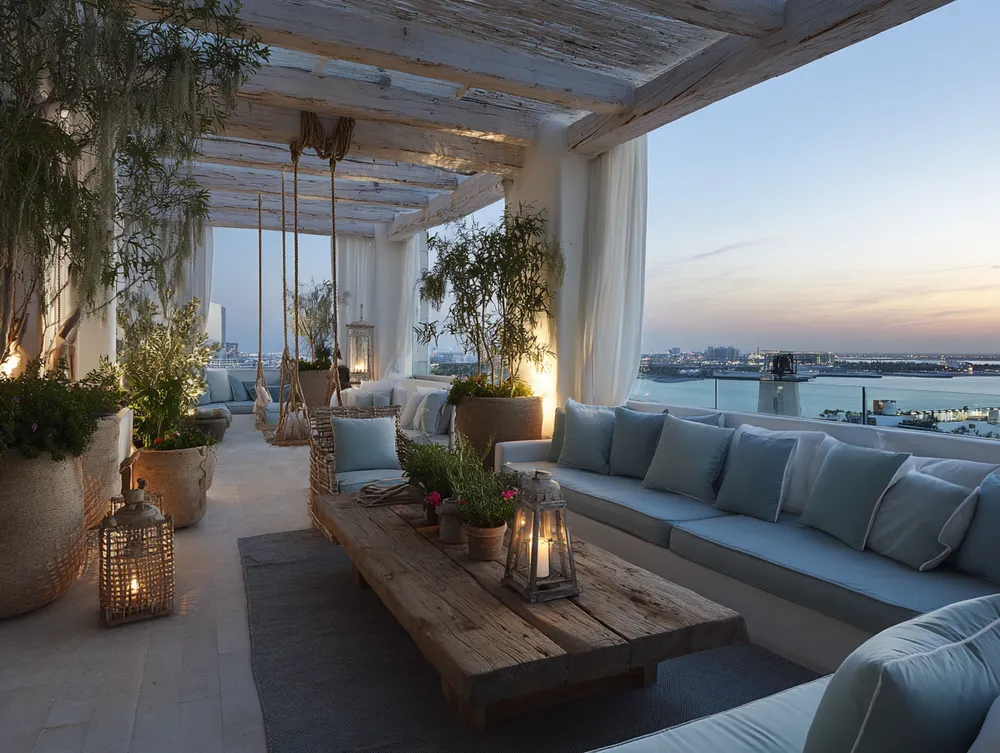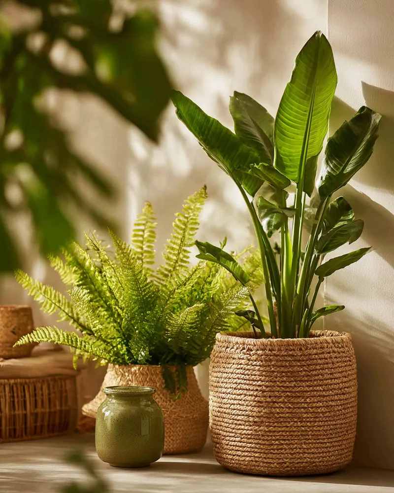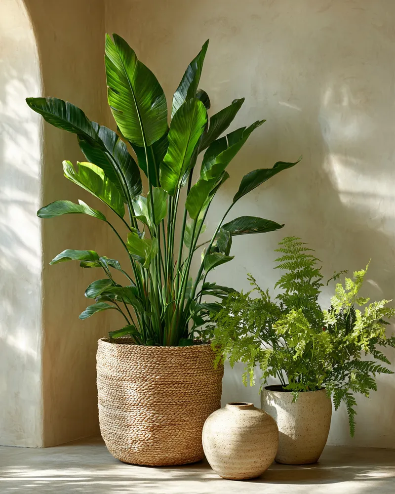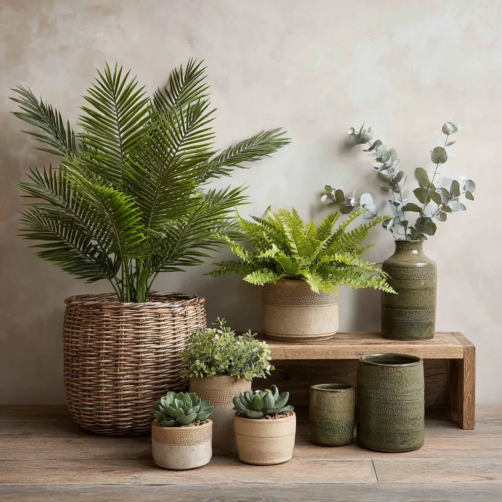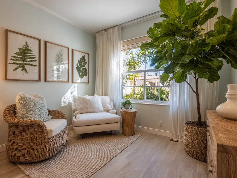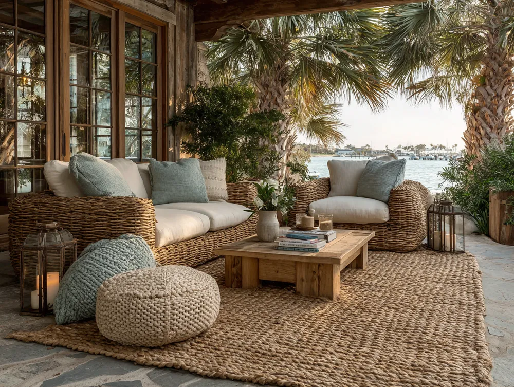 Large potted palms, seagrass plants, or even simple eucalyptus branches in a vase can evoke the beach. Choose planters that complement your coastal decor – natural materials like terracotta, woven baskets, or simple white ceramic pots.