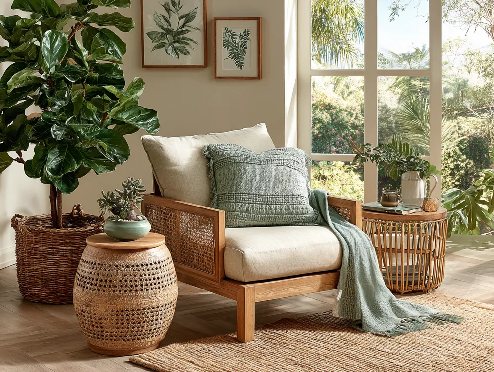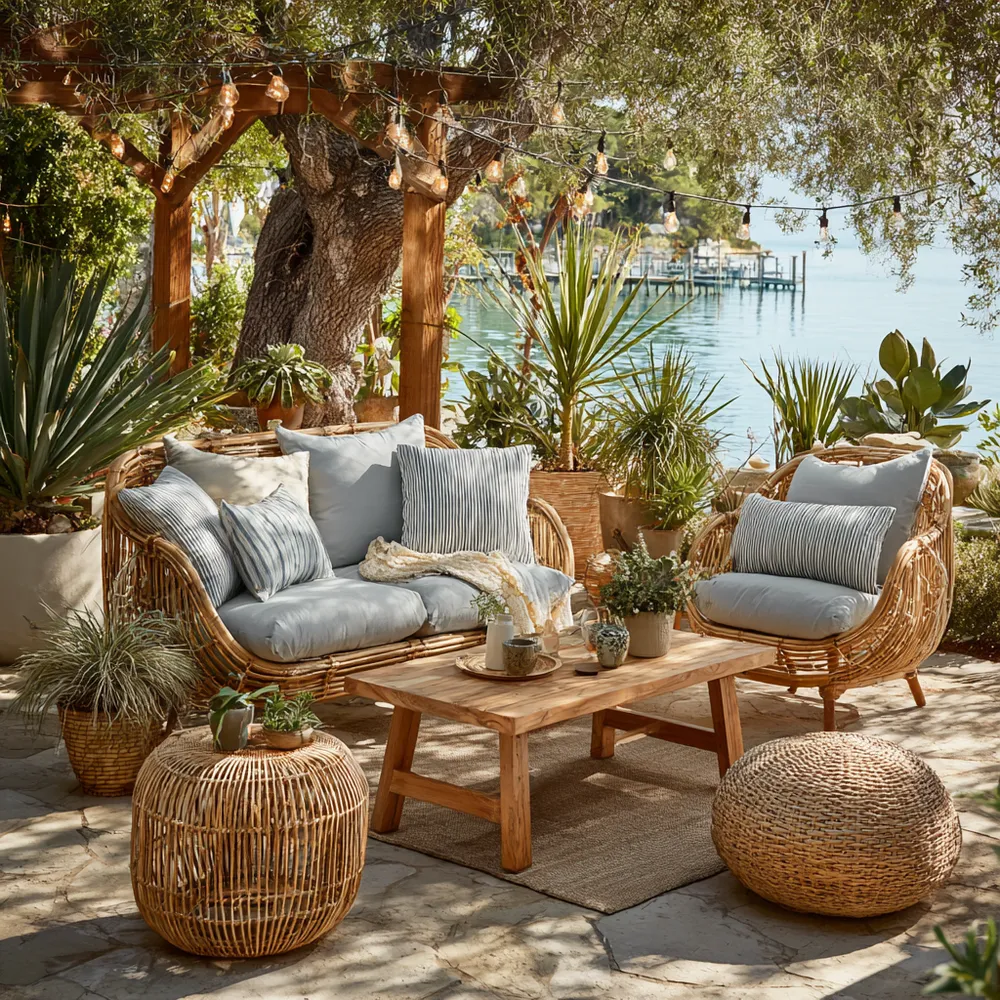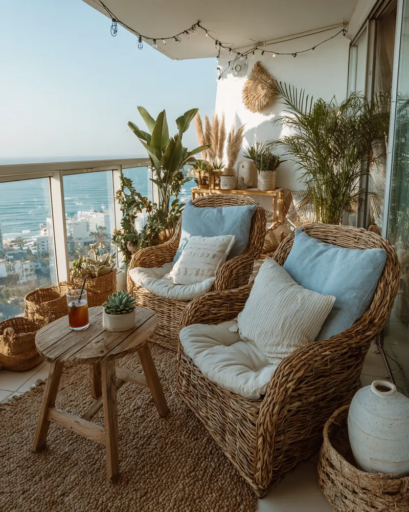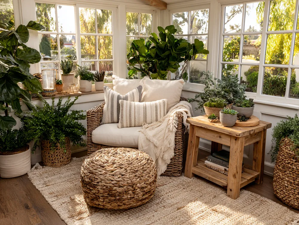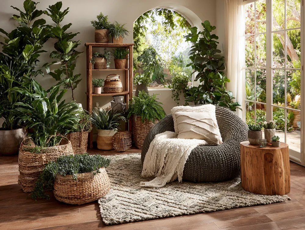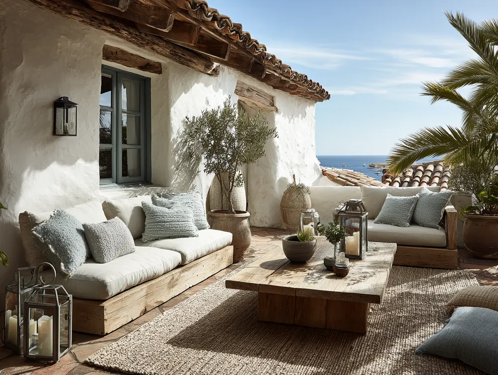 Large potted palms, seagrass plants, or even simple eucalyptus branches in a vase can evoke the beach. Choose planters that complement your coastal decor – natural materials like terracotta, woven baskets, or simple white ceramic pots.