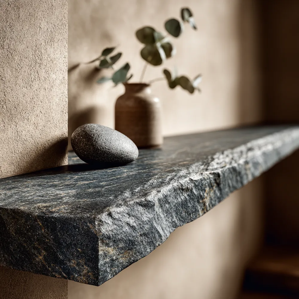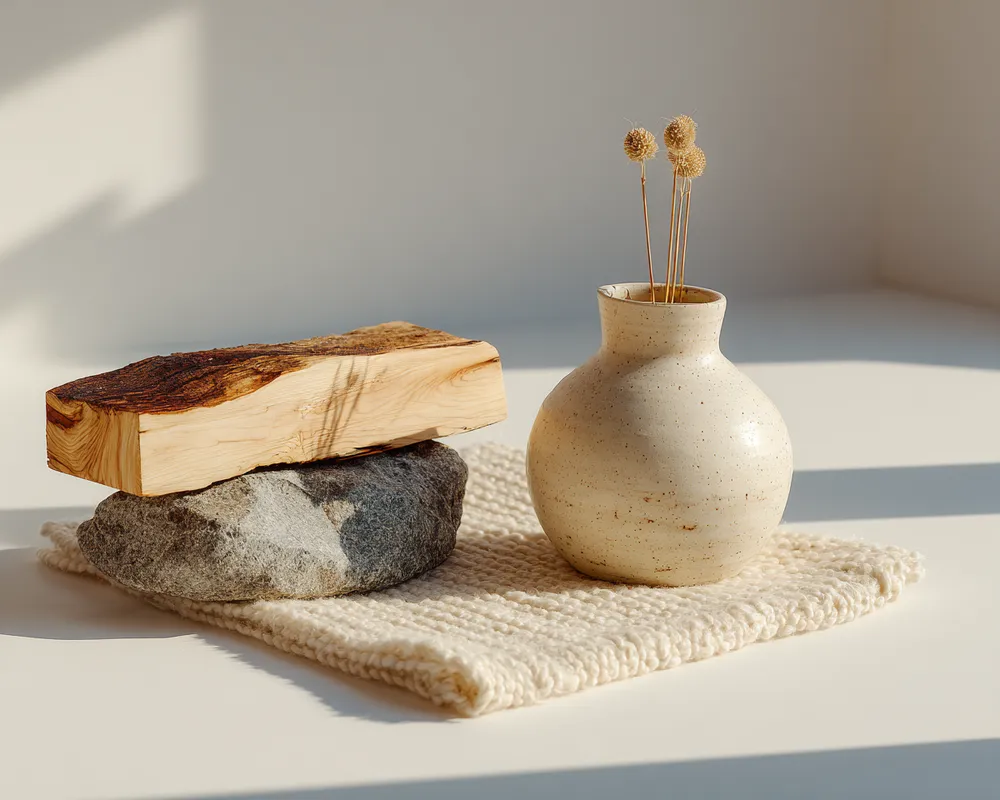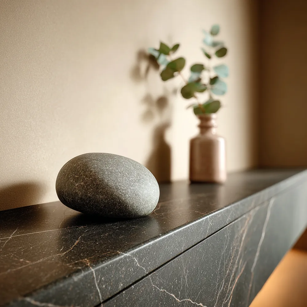 * **Stone Accents:** A smooth river stone on a shelf, a small pebble tray, or a polished agate slice.