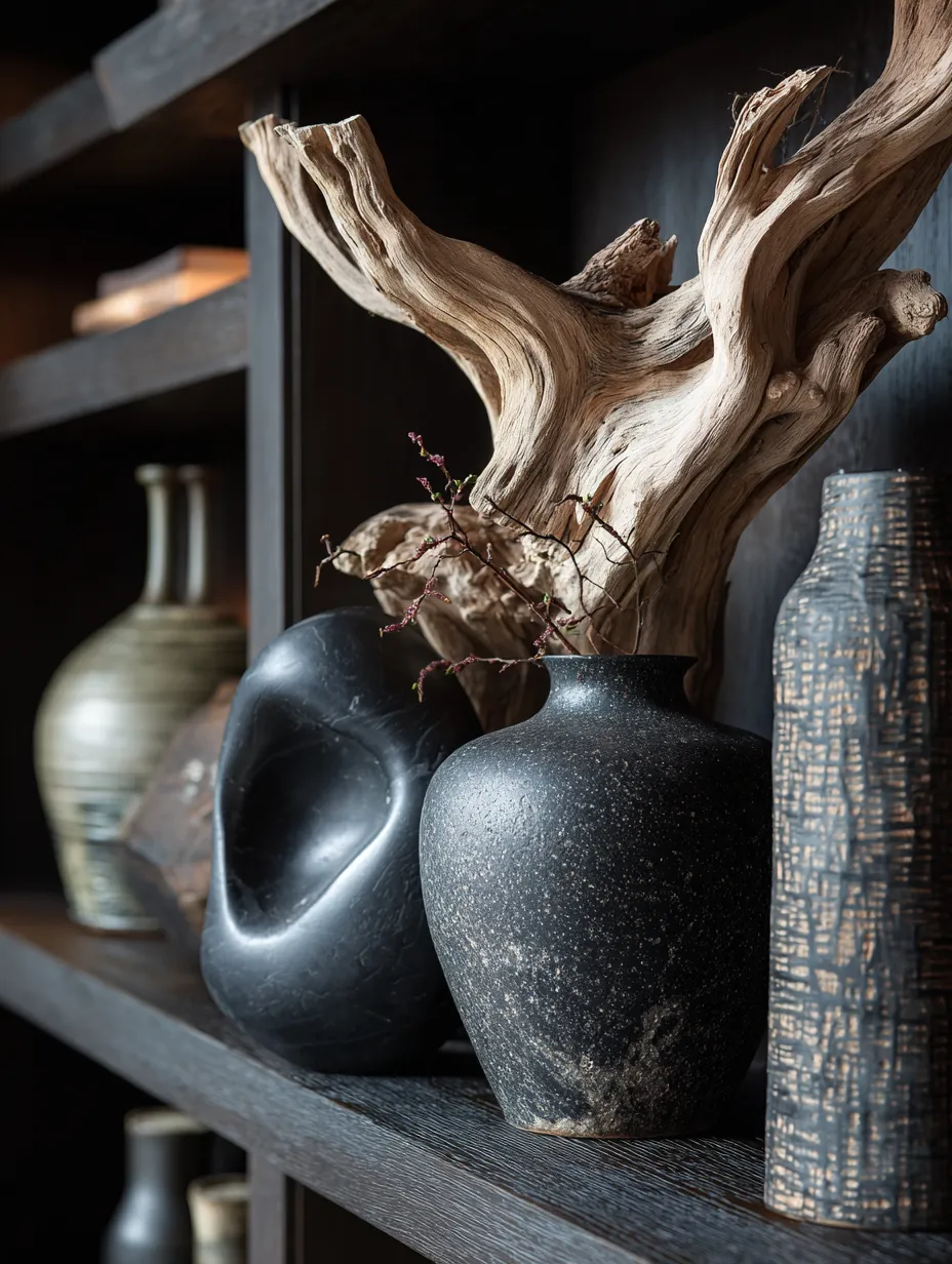 * **Ceramic Vessels with Organic Shapes:** Handmade pieces with visible texture.