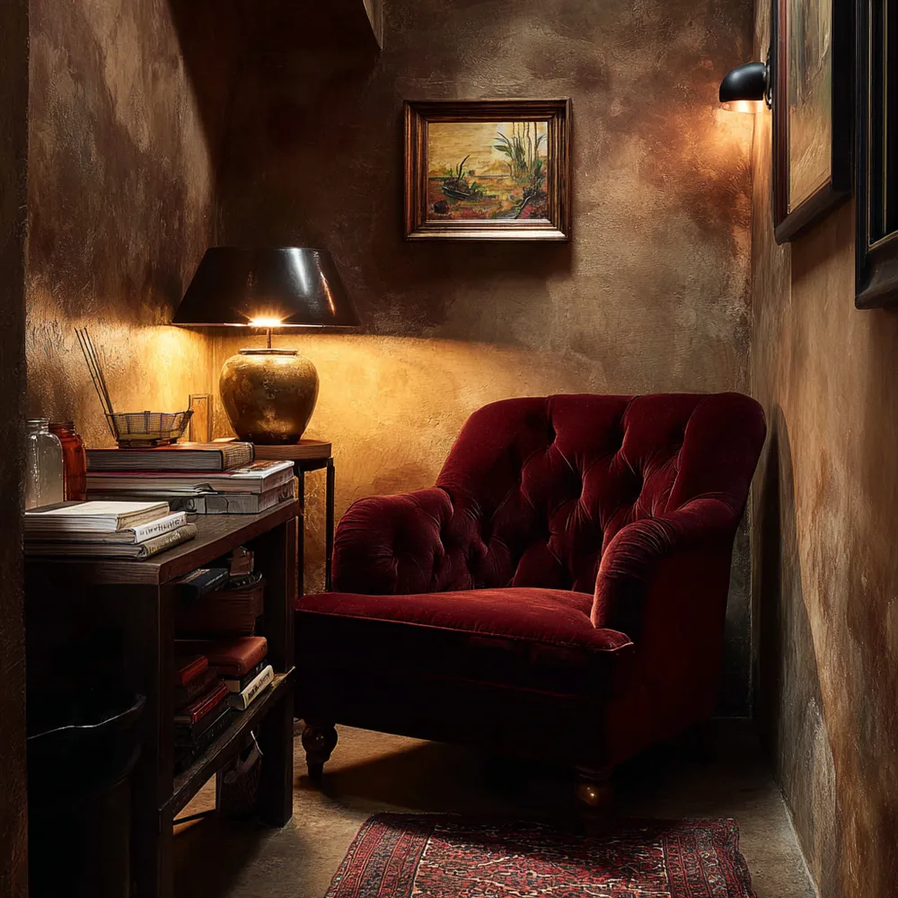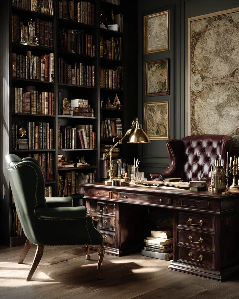 This style evokes a sense of gravitas and refined comfort, ideal for quiet contemplation or sophisticated gatherings.