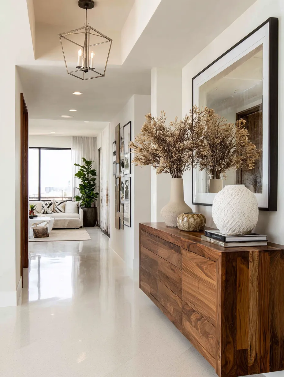 * **Clever Storage:** Integrate hidden console tables or wall-mounted cabinets to stash keys and mail.