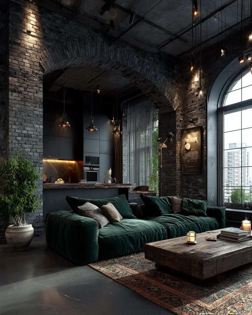* **Mix Materials:** Combine raw industrial elements with softer textures like plush velvet, warm wood, or natural fibers.