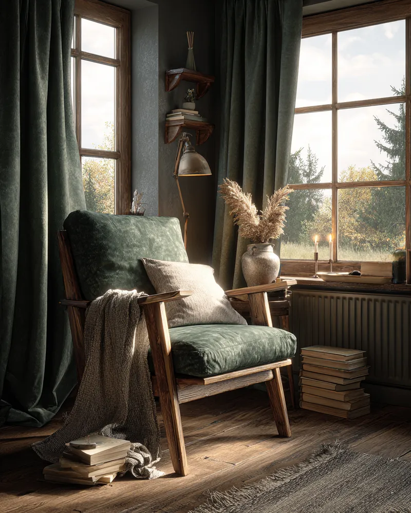 • Plush Upholstery: Textures like boucle, velvet, or soft linen.