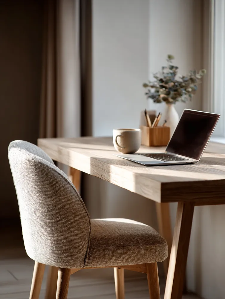 * **Minimalist Desk:** Natural wood or a sleek, unfussy design.
