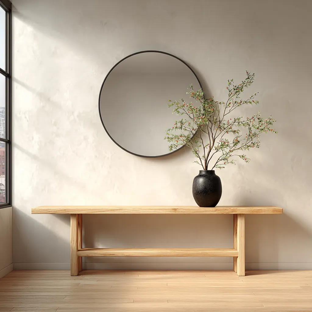 The entryway sets the tone for your entire home, and for Japandi style, serenity is key. ☯️ Focus on clean lines, natural materials, and a sense of calm. Opt for a simple, uncluttered console table made from light wood, paired with a minimalist mirror. Add a subtle Japanese inspired accent like a bamboo plant or a single, elegant ceramic vase. Ensure ample but soft lighting. This space should welcome guests with peace and tranquility. 🌿