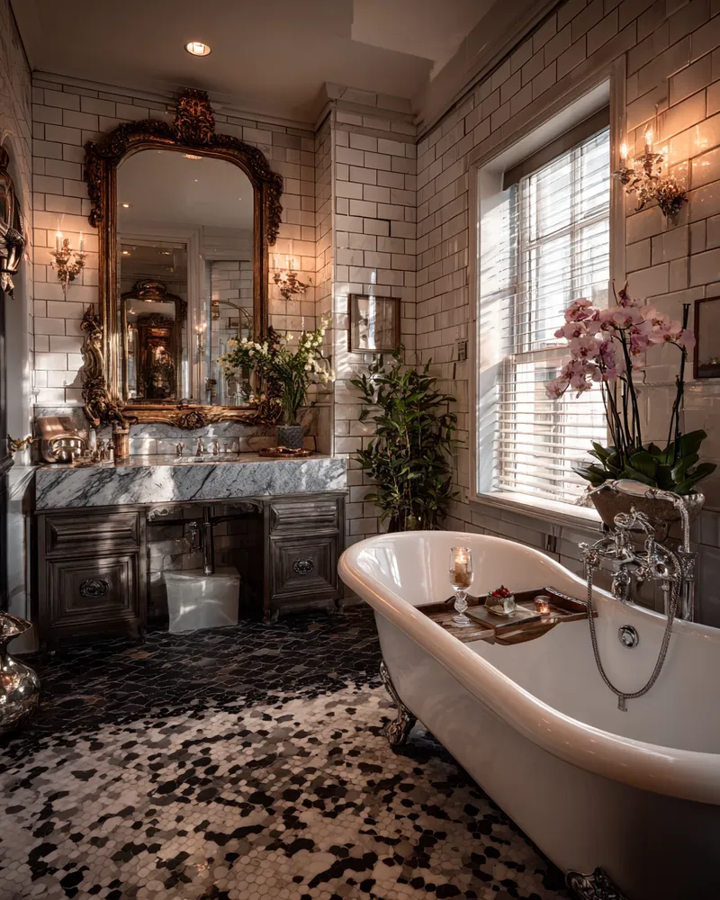 Indulge in the ultimate relaxation with a French manor-inspired bathroom. Create a space that embodies opulent tranquility and timeless elegance. 🤍 Key features for this luxurious escape: * **Clawfoot Tub:** A centerpiece for bathing indulgence. * **Marble & Classic Tile:** Elevate the space with elegant stone and timeless patterns. * **Vintage Fixtures:** Opt for antique-style faucets and showerheads. * **Ornate Accents:** Incorporate an antique mirror, decorative lighting, or a charming vanity. * **Soft Lighting:** Create a spa-like ambiance with dimmable, warm lights. Transform your bathroom into a private oasis. Save this for your dream renovation! 🛁
