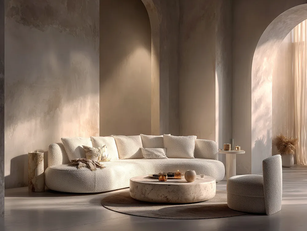 For 'Sculptural Spaces,' I’m always drawn to pieces that embrace curved lines and soft forms. Think rounded sofas with deep seating, armchairs with enveloping silhouettes, or coffee tables with flowing, organic shapes. These elements create a sense of fluidity, comfort, and an approachable elegance. They soften the edges of a room and invite you to relax and indulge in the design. It's about creating a visual conversation through gentle, artful contours. Save these ideas for a softer, more sculptural approach! ✨