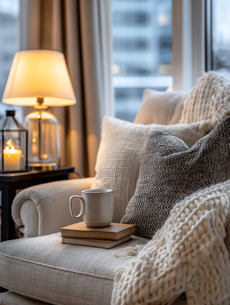- **Warm Textures:** Think chunky knits, faux fur, or soft velvet throws and cushions.