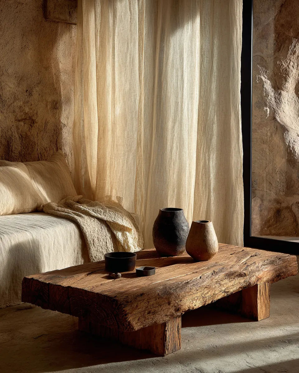 This design philosophy invites you to find calm in the natural flow of life. Think aged wood with character, hand-thrown pottery with subtle flaws, and textures that speak of time.