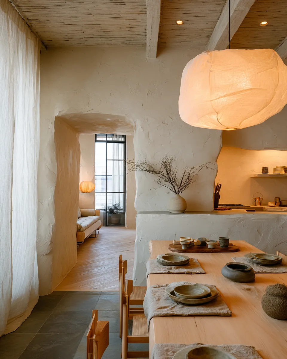 Create a dining space that encourages mindful moments and simple, shared meals. The Japandi aesthetic, with its blend of Japanese and Scandinavian influences, is perfect for this. ✨