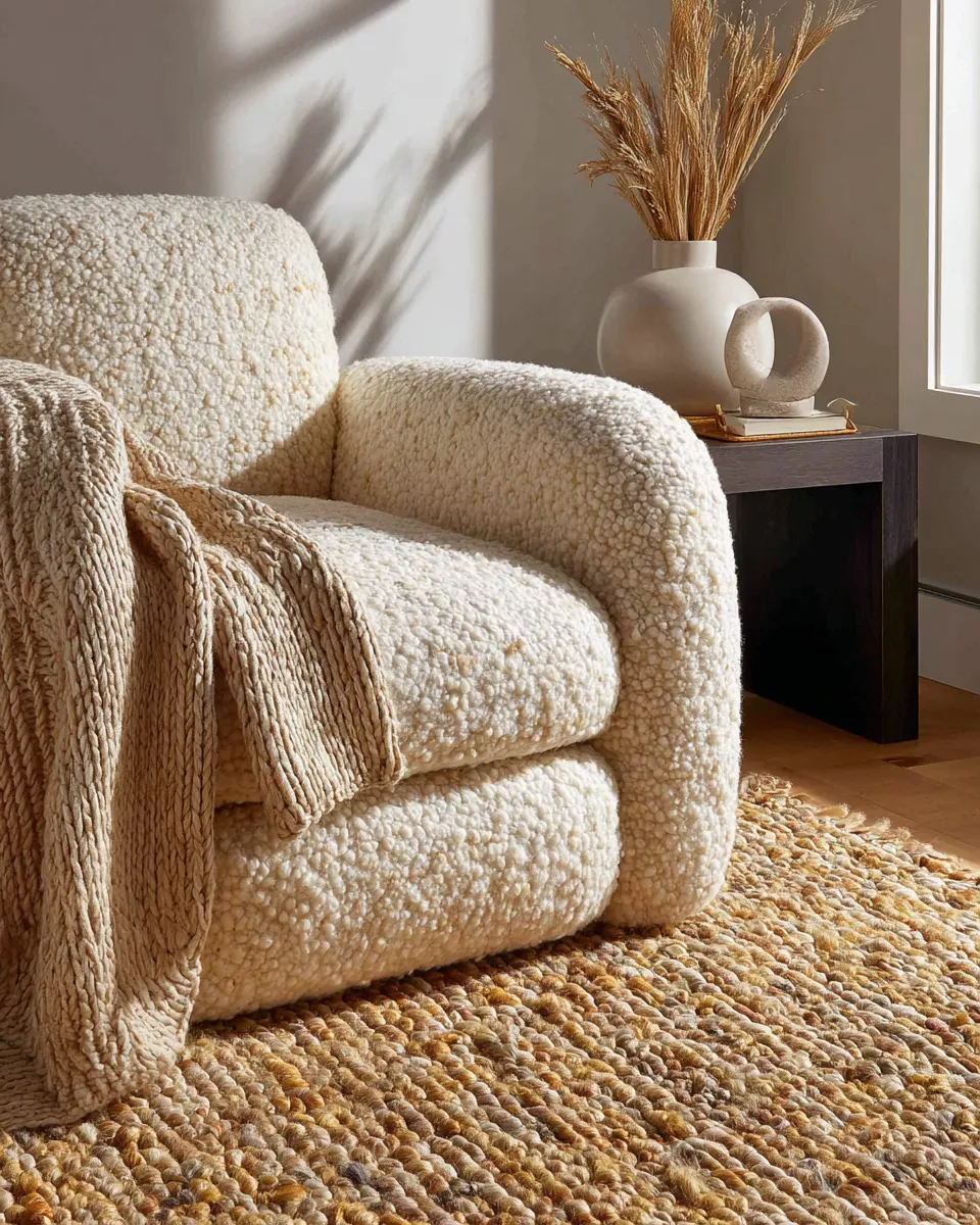* **Soft & Plush:** Bouclé, velvet, or chunky knits in throws and cushions.