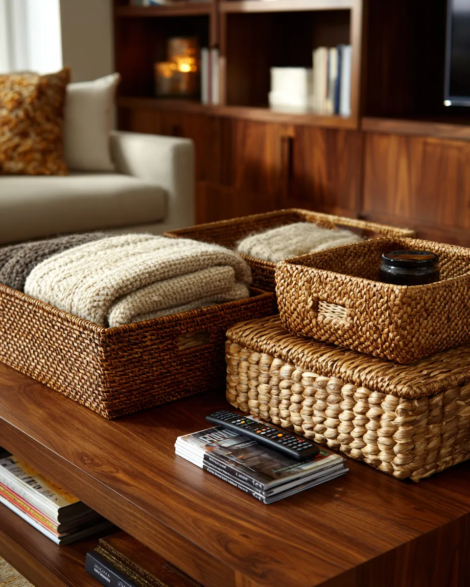 * **Living Room:** Store blankets, magazines, or remote controls.