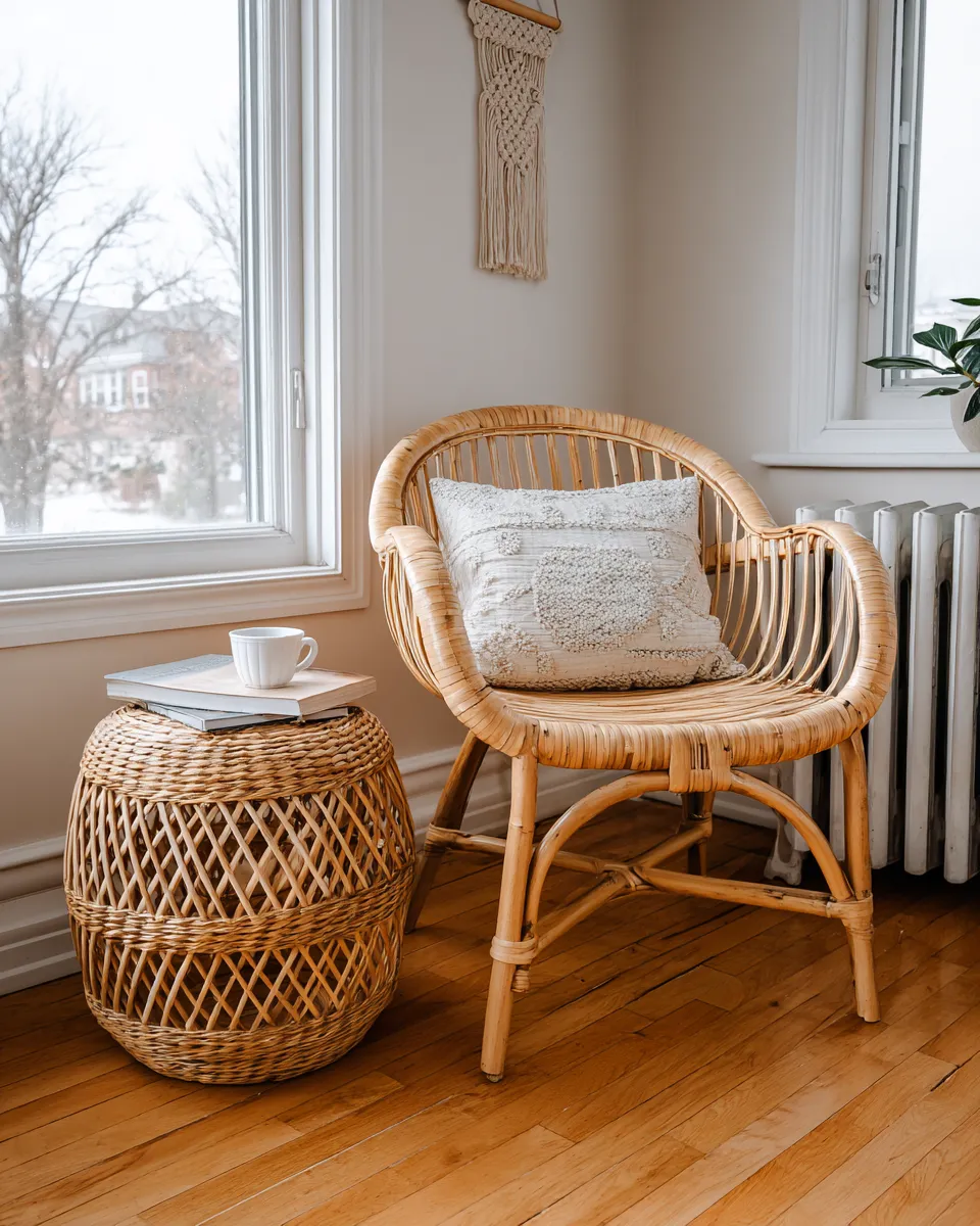 * **Compact rattan accent chair:** Adds style without taking too much room.