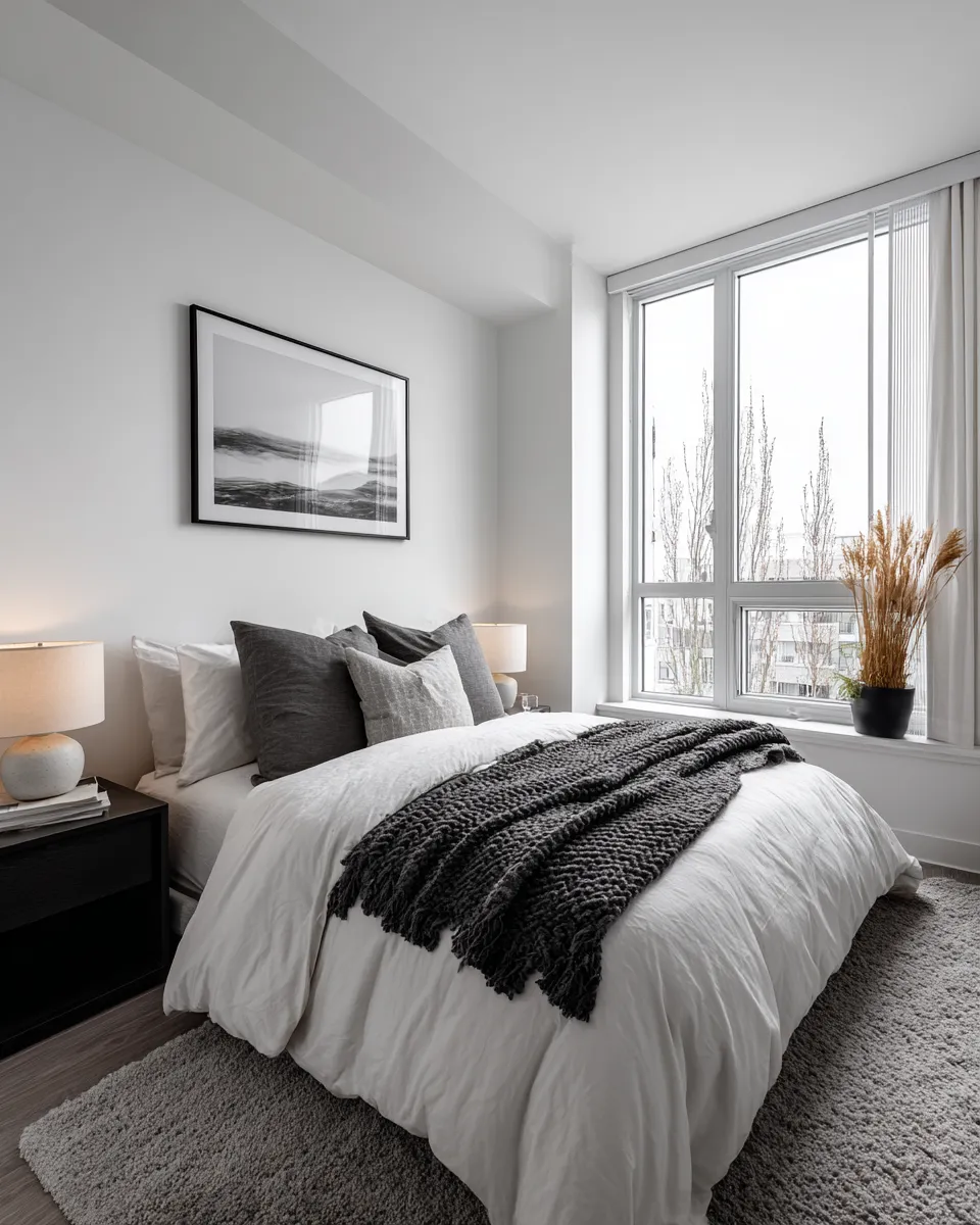 • Soft Textures: Layer fluffy rugs, crisp cotton bedding, and a cozy knit throw.