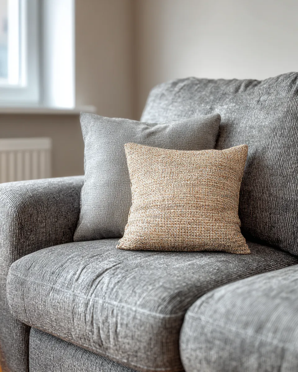 • Choose 2-3 cushions in complementary textures and neutral tones.
