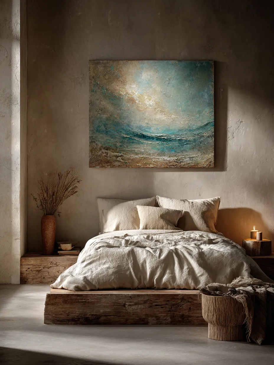 Who says abstract has to be chaotic? Find tranquility in abstract forms with soothing color palettes and organic shapes. Think soft blues, greens, and creamy whites, reminiscent of natural landscapes. Place a calming abstract piece above a minimalist bed or sofa to foster a sense of peace. This approach transforms your home into a serene escape, where art enhances well-being. 🕊️