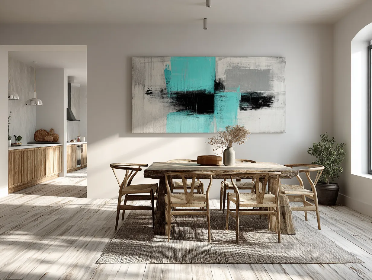 In the world of abstract art and minimalist interiors, negative space isn't empty; it's intentional! Large areas of calm color or white within an artwork create breathing room, enhancing the impact of the depicted forms. Embrace this in your art choices for a sophisticated, uncluttered aesthetic that feels expansive and serene. Let your art (and your walls!) breathe. 🌬️