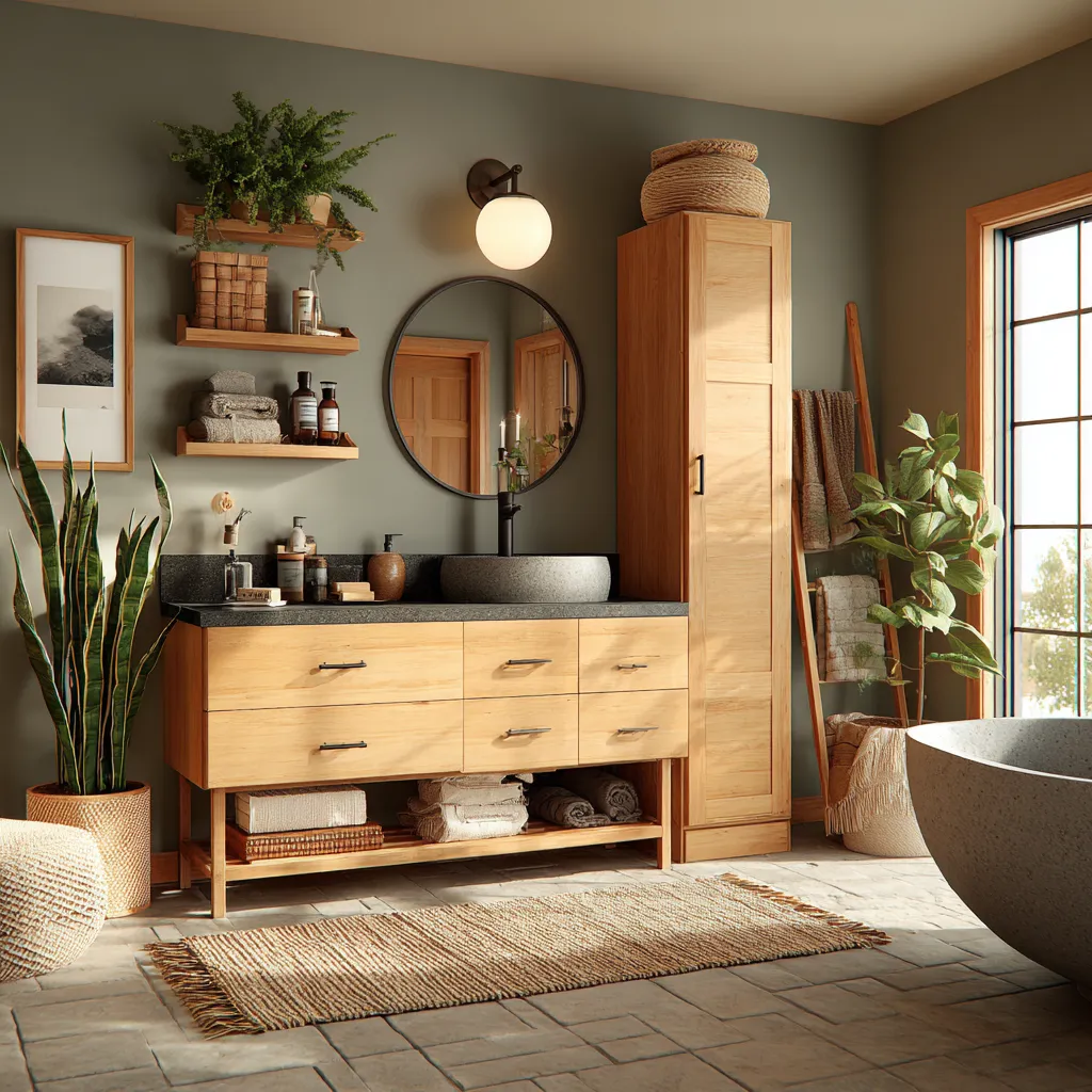 Transform your bathroom into a serene sanctuary with the calming principles of Zen design! 🛀 Incorporate natural materials like bamboo for storage, a wooden bathmat, and stone accents. Opt for earthy, neutral color palettes in your tiles and textiles. Soft, diffused lighting, perhaps from a salt lamp or natural-toned fixtures, enhances the tranquil ambiance. Add a touch of greenery with a moisture-loving plant. It's about creating a space for mindful self-care and relaxation, free from clutter and stress. Save this for your spa-like bathroom transformation! 🧘♀️ #ZenBathroomIdeas#SpaLikeBathroomIdeas#NaturalBathroomIdeas#MindfulSelfCareIdeas#CalmingDecorIdeas#BambooBath#StoneAccents#BathroomSanctuary#EarthyTones#HomeSpa