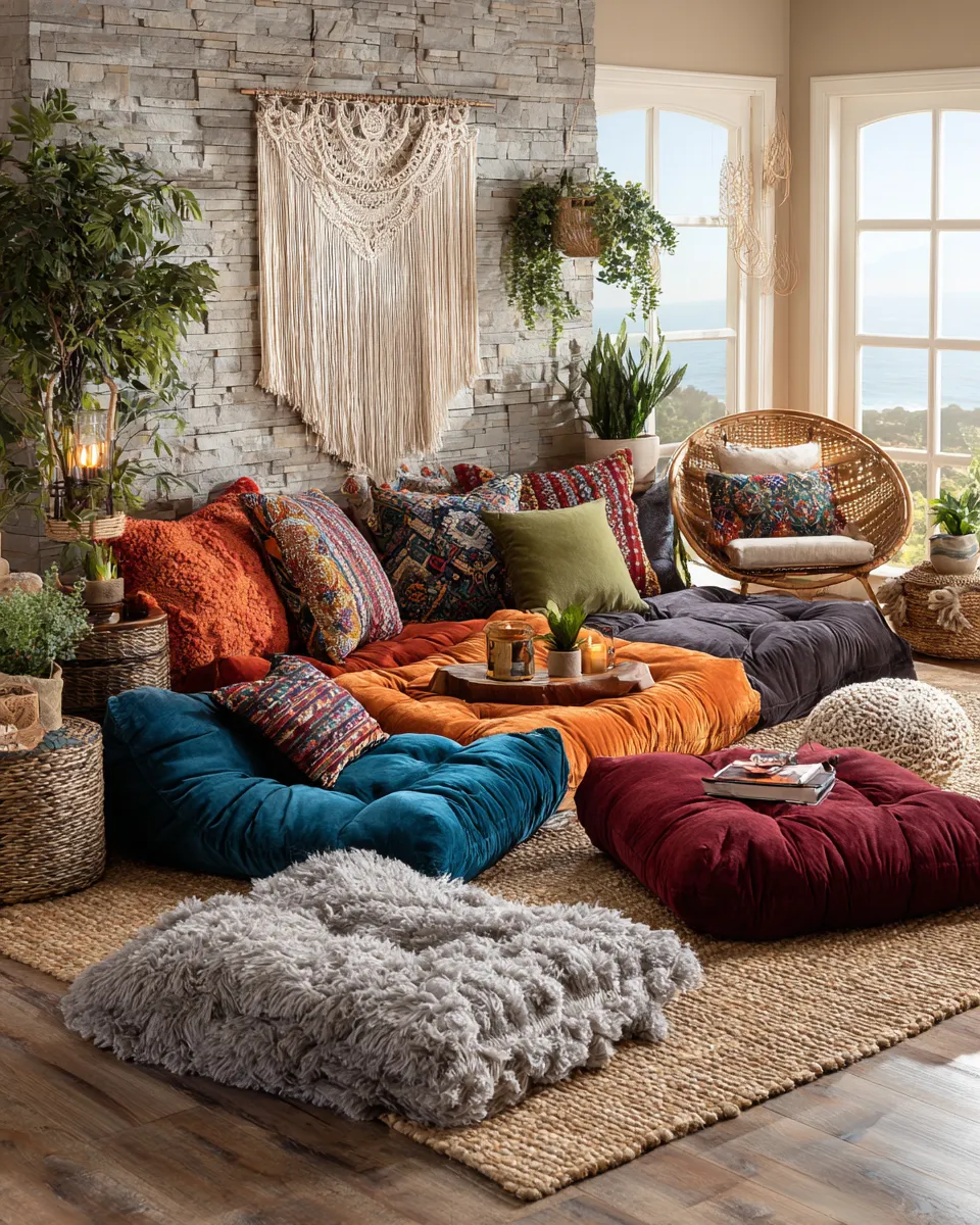 2. Woven floor cushions for extra seating