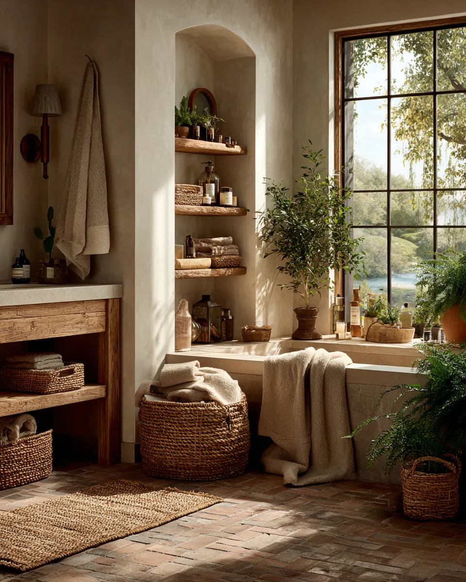 Woven Treasures: Accessorizing Your Boho Bathroom with Global Baskets! 🛁🌿