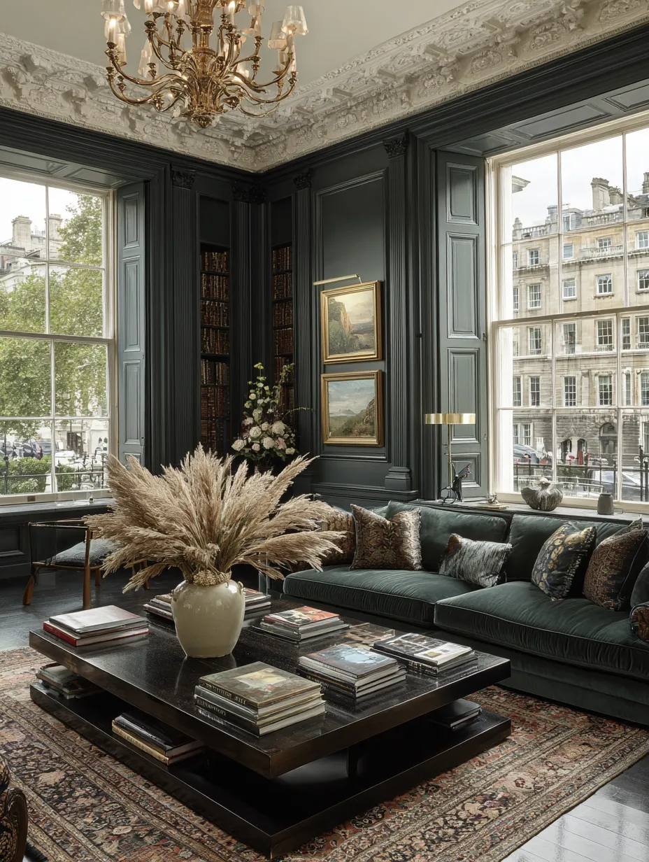 Elevate your living room with touches of sophisticated opulence and refined comfort. It's all about creating a sanctuary that feels both grand and inviting. Think plush velvet textures mixed with natural wood, and warm, diffused lighting. ✨
