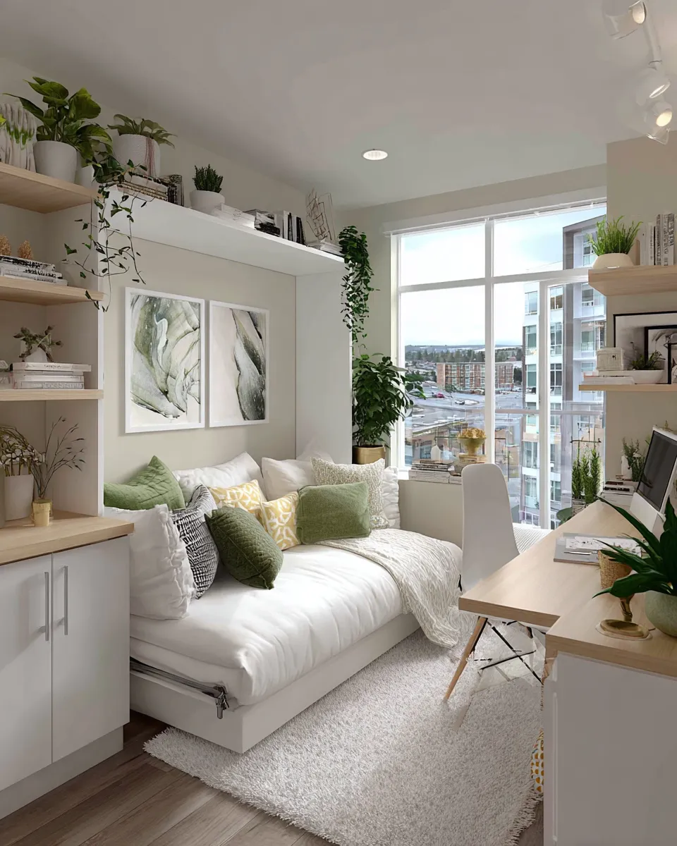 Small-space living demands clever solutions. Use multi-level lighting (floor lamps + sconces) to define areas in studios. Opt for dual-purpose furniture—storage ottomans, fold-down desks, and sofa beds. Mirrors opposite windows amplify light; vertical gardens save floor space. Stick to a cohesive palette (3 max colors) with textures adding depth. Key Move: Float shelves near ceilings for visual height.