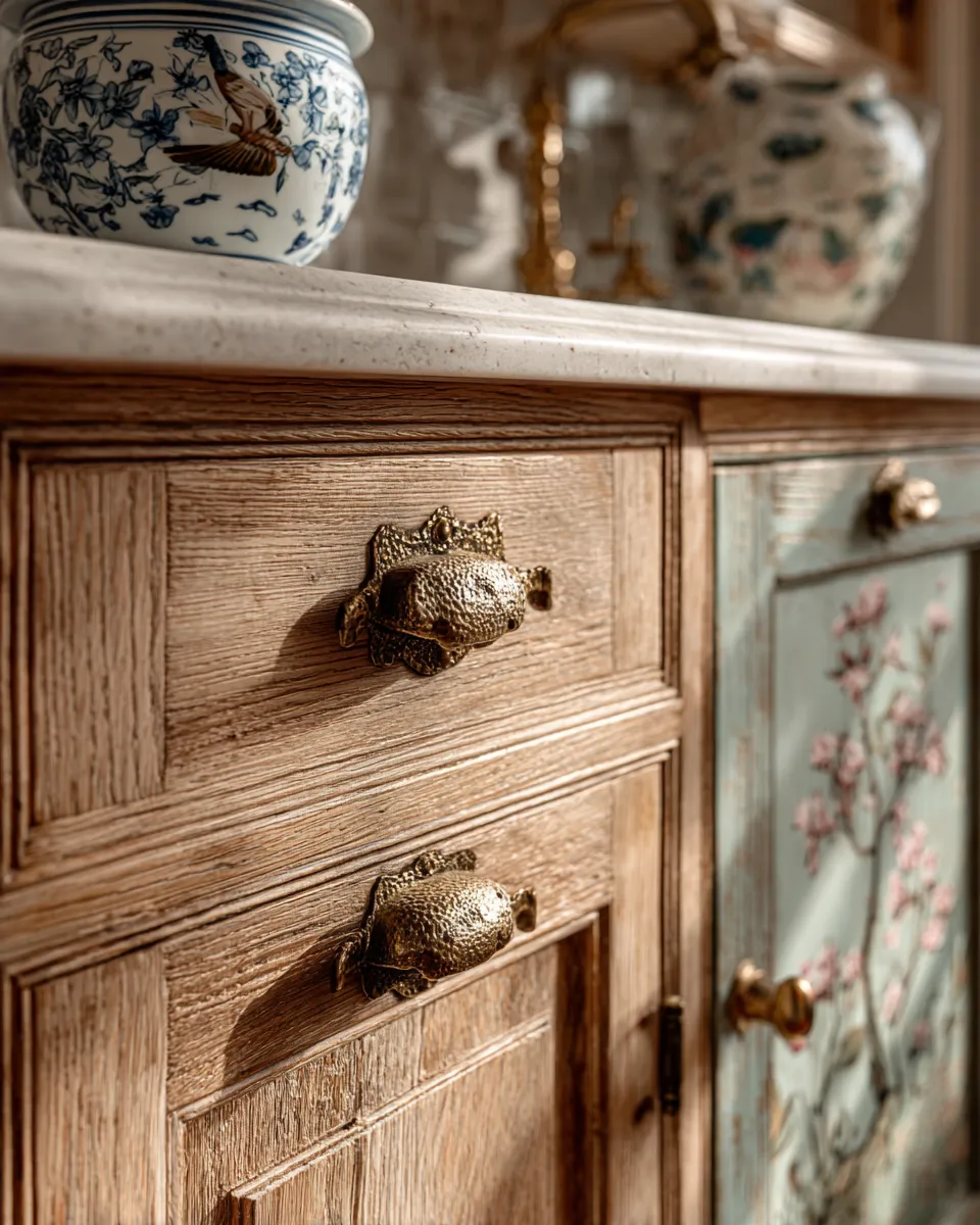 Elevate your furniture with hardware that tells a story. Save this for your detail-oriented design inspiration! 🗝️ #ArtisanalHardware#CabinetHardwareIdeas#ArtisanalHardwareIdeas#DetailIdeas#HomeTransformationIdeas#KitchenCabinetIdeas#BathroomCabinetIdeas#HandmadeHardware#VintageHardware#InteriorDetails#TheFolkloreFind