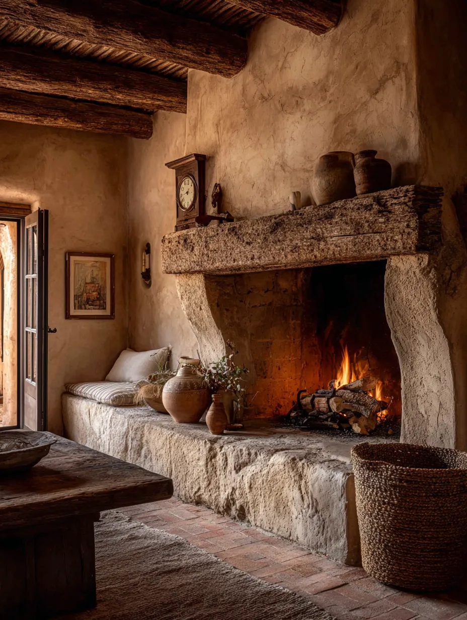 Let your fireplace become a focal point of comforting tradition. Save this for your cozy hearth styling! 🪵 #ArtisanalFireplace#FireplaceIdeas#CozyHomeIdeas#ArtisanalDecorIdeas#HearthIdeas#HomeAtmosphereIdeas#RusticDecor#HandmadeHome#FireplaceDecor#CozyLiving#TheFolkloreFind