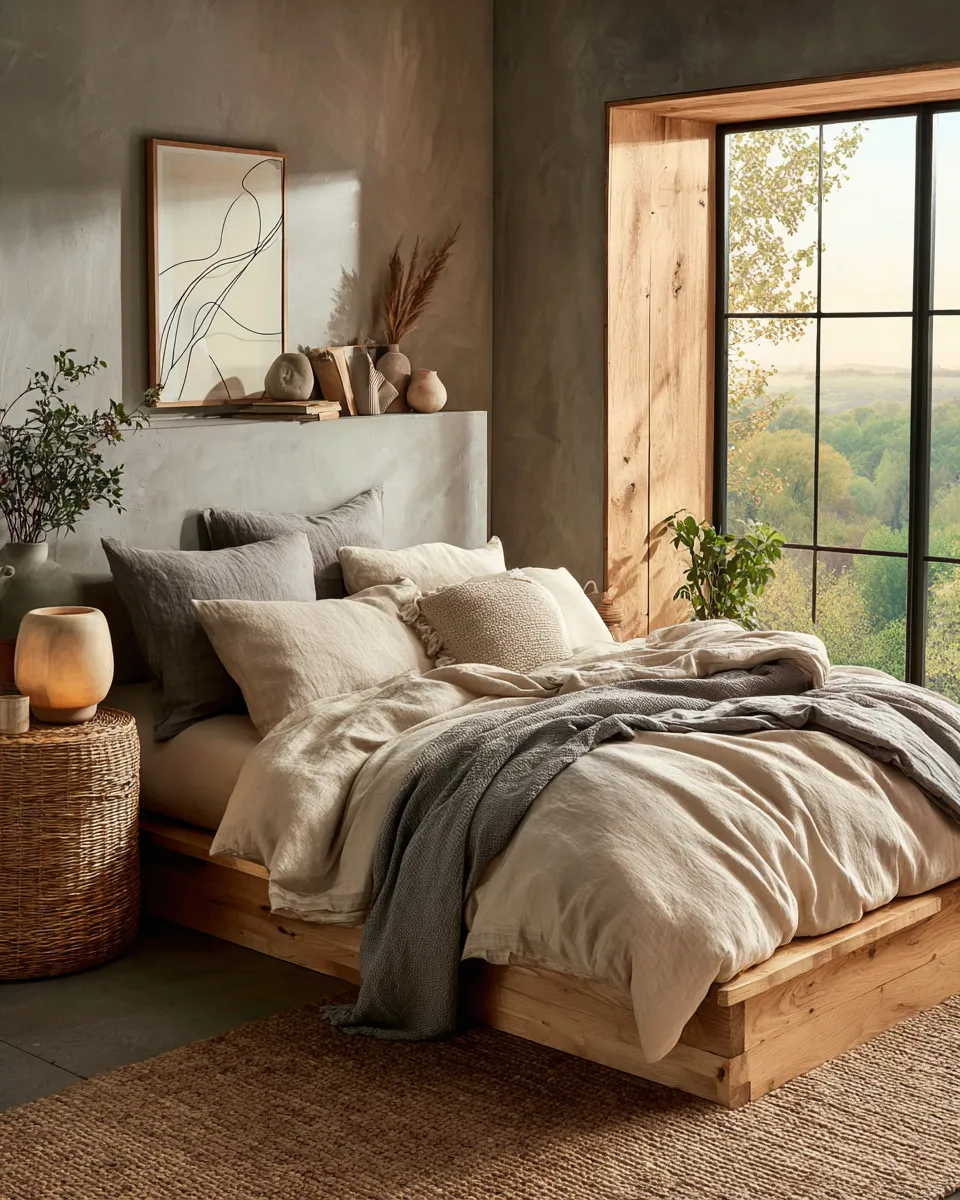 Transform your bedroom into a sanctuary with Japandi principles. The key is layering natural textures and sticking to a muted, calming color palette. Imagine a low-profile bed frame in light oak, paired with a textured linen duvet and organic cotton sheets in shades of cream and soft grey. Introduce woven elements like a rattan bedside table and a jute rug for warmth. A single, abstract art piece with organic lines enhances the minimalist aesthetic. Think of this as your personal haven for rest and rejuvenation. 🌙 Save this for your cozy bedroom inspo! #JapandiBedroomIdeas#BedroomIdeas#CozyBedroomIdeas#NaturalBedroomIdeas#JapandiInterior#MinimalistBedroom#TextileDesign#HomeSanctuary#WabiSabiHome#SleepHaven