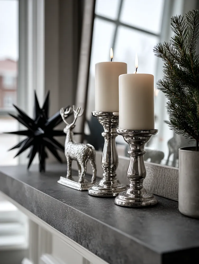 Beyond the Tree: Chic Metal Accents for a Minimalist Christmas Mantel ✨