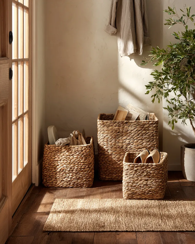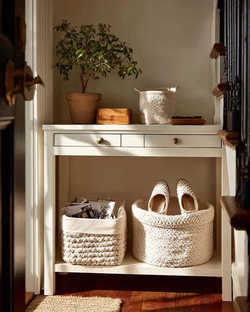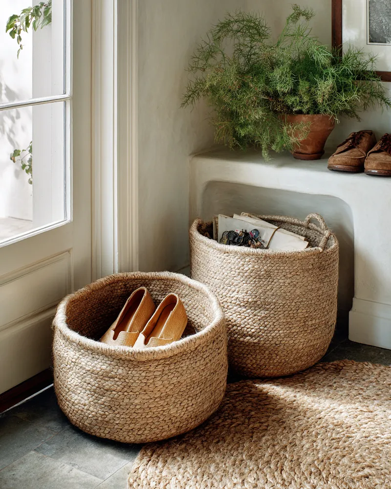 Styling Your Entryway with Linen Baskets for Natural Storage 🤍