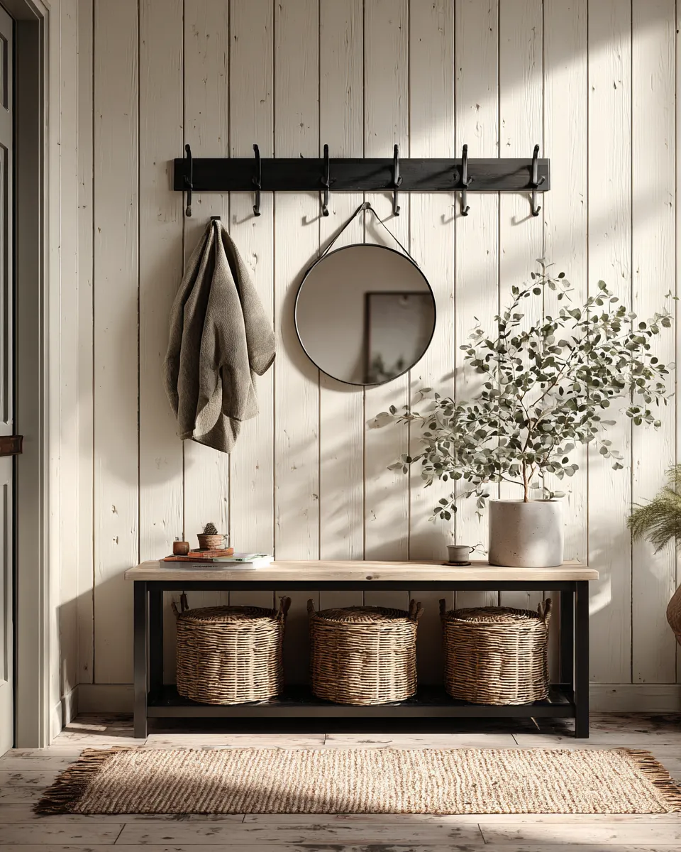 Modern Farmhouse Entryway: Rustic Charm Meets Clean Lines ✨