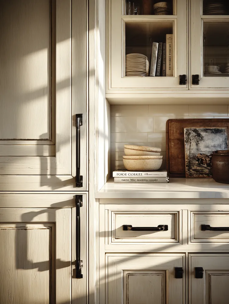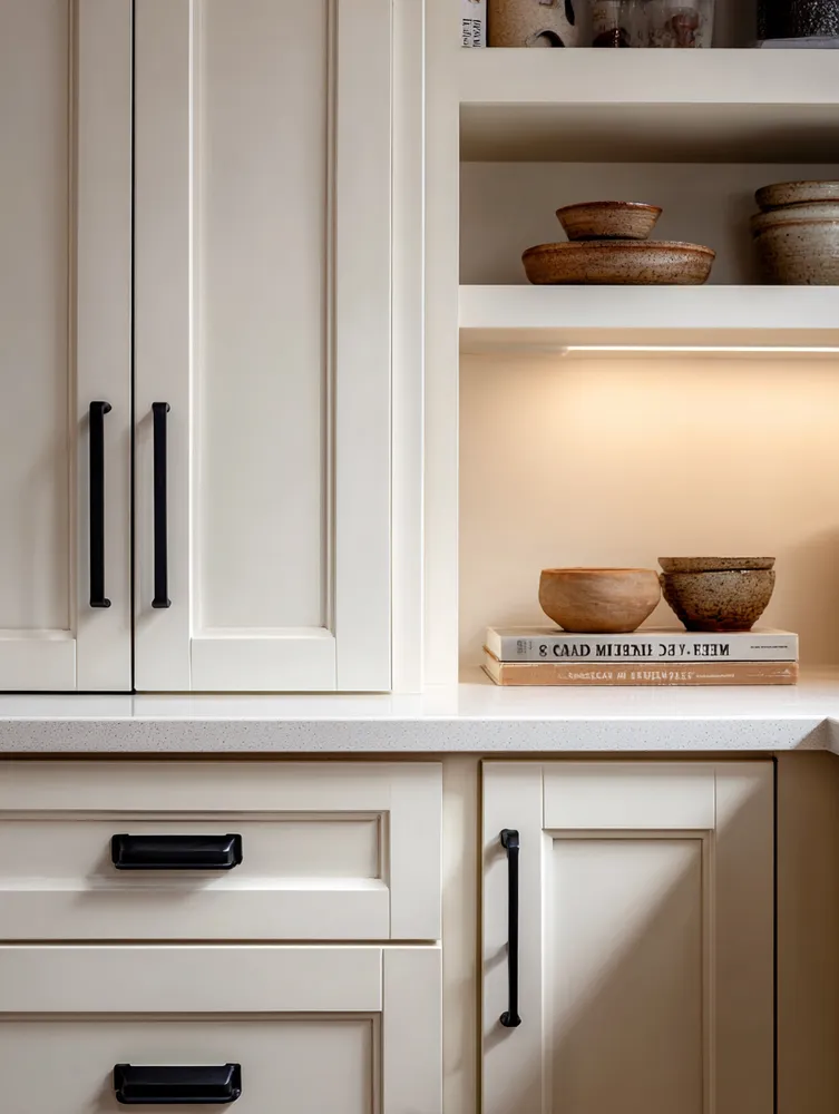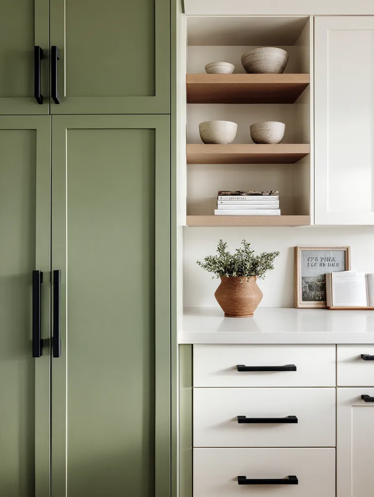 Achieving that elegant farmhouse kitchen feel often means embracing a 'less is more' approach to cabinet styling. It’s about curated beauty and functionality. 🤍 My philosophy: * **Focus on Quality Hardware:** Matte black or brushed brass pulls make a statement. * **Minimal Knick-Knacks:** Let the cabinetry shine. * **Strategic Open Shelving:** Display a few cherished ceramic pieces or cookbooks. Clean lines and thoughtful touches are key. Save for your cabinet inspiration! 🌿